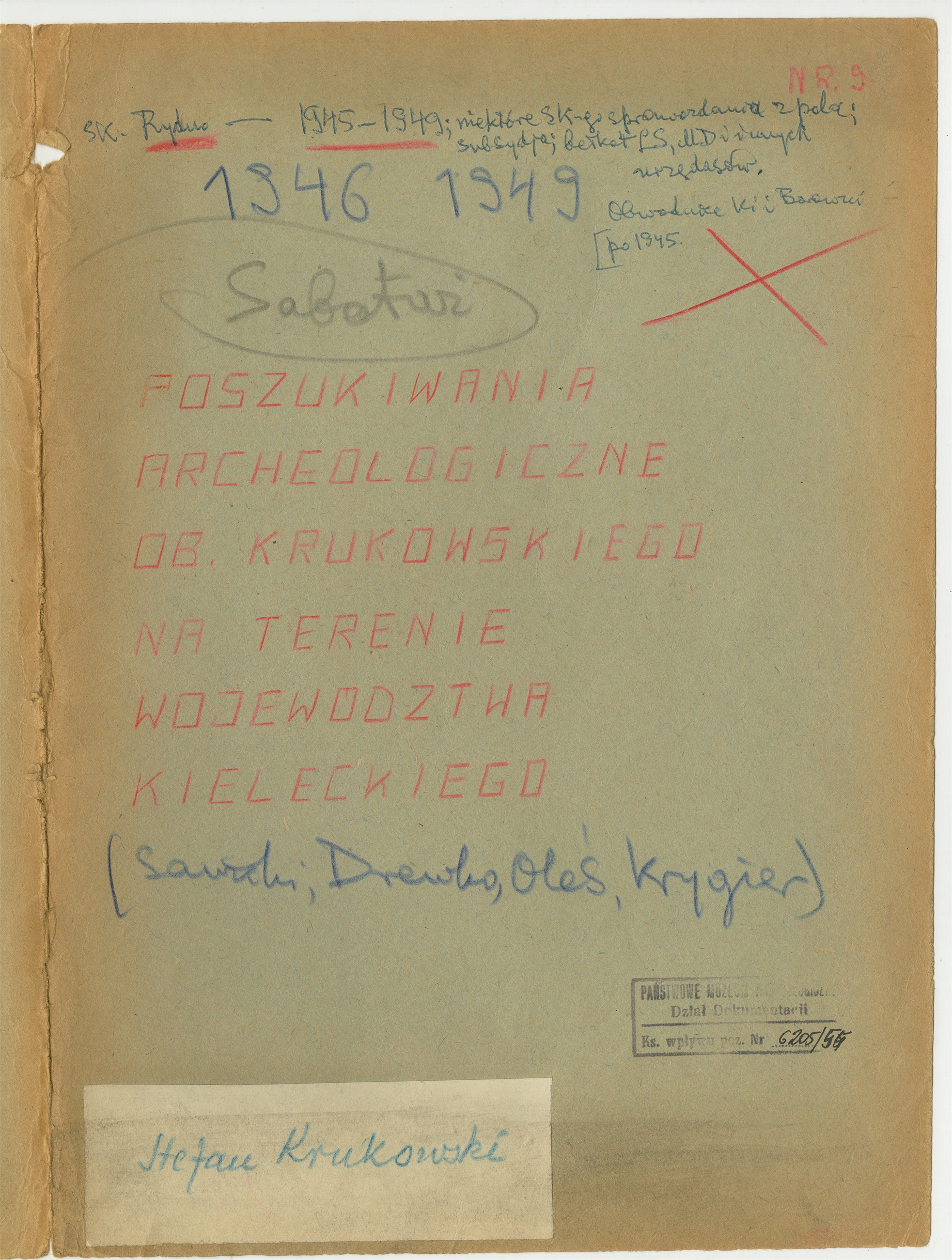 Okładka materiałów Stefana Krukowskiego dotyczących badań w latach 1946-1949 na terenie województwa kieleckiego