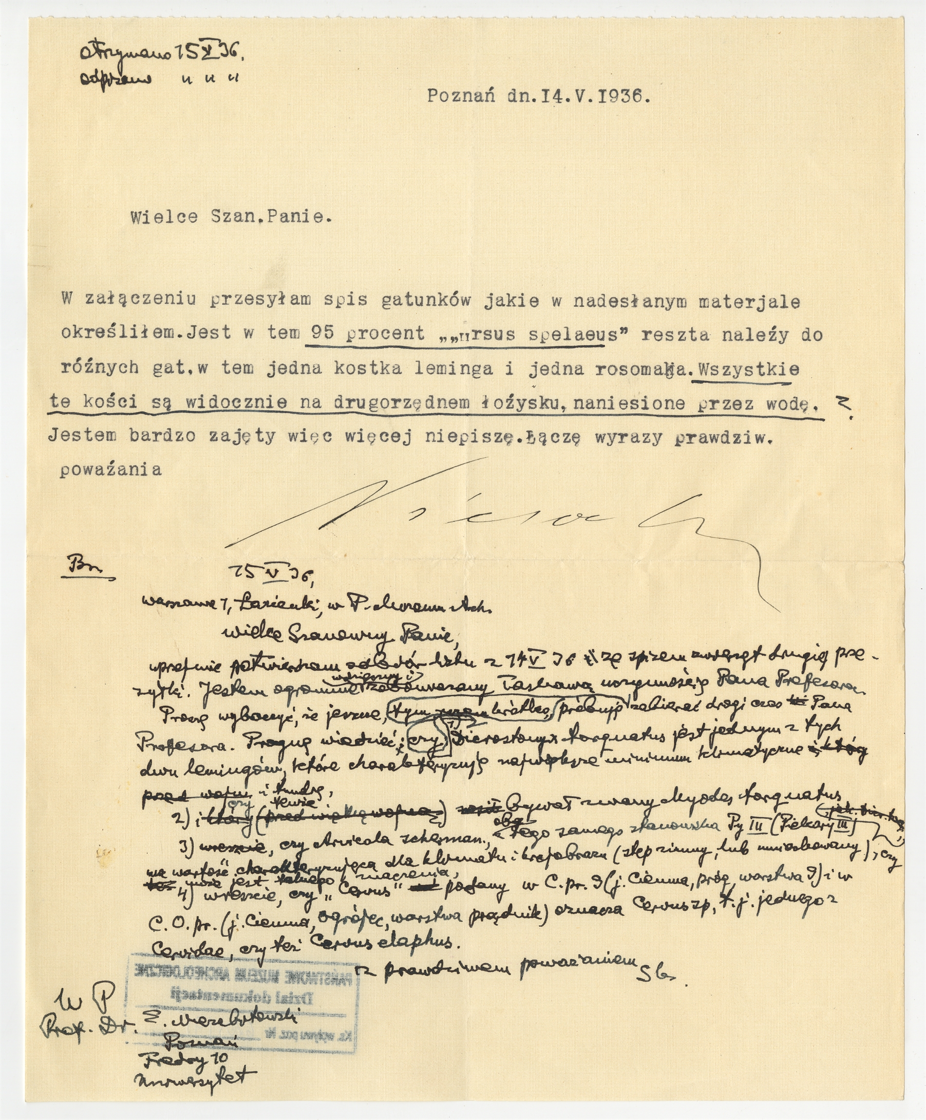 Pismo prof. dr Niezabitowskiego z dnia 14 V 1936 r. a także rękopis-brudnopis odpowiedzi prof. Stefana Krukowskiego