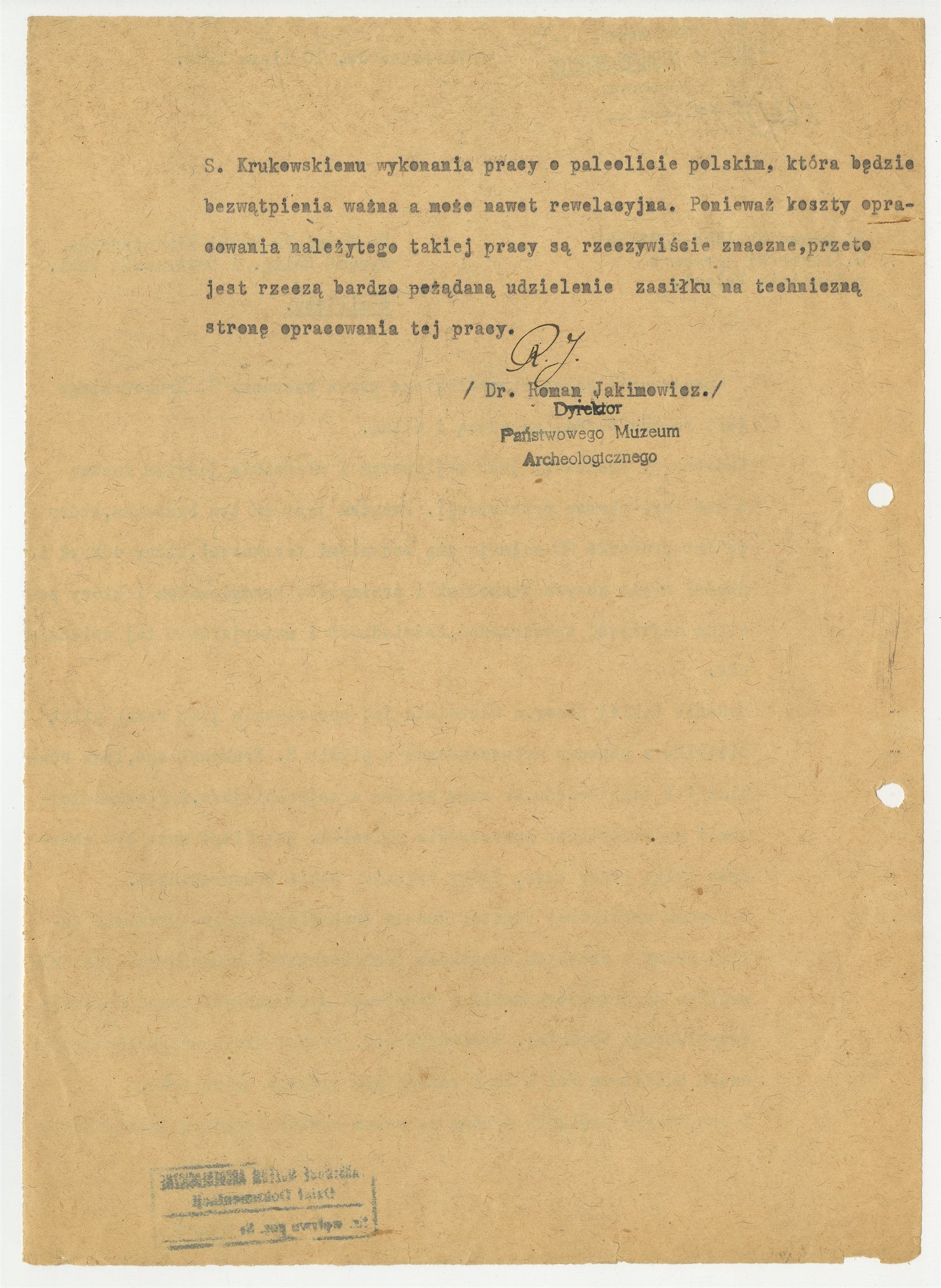Pismo z Państwowego Muzeum Archeologicznego do Wydziału Nauki Ministerstwa Wyznań Relig. i Oświecenia Publ. z dnia 10 lipca 1935 r. (cd)