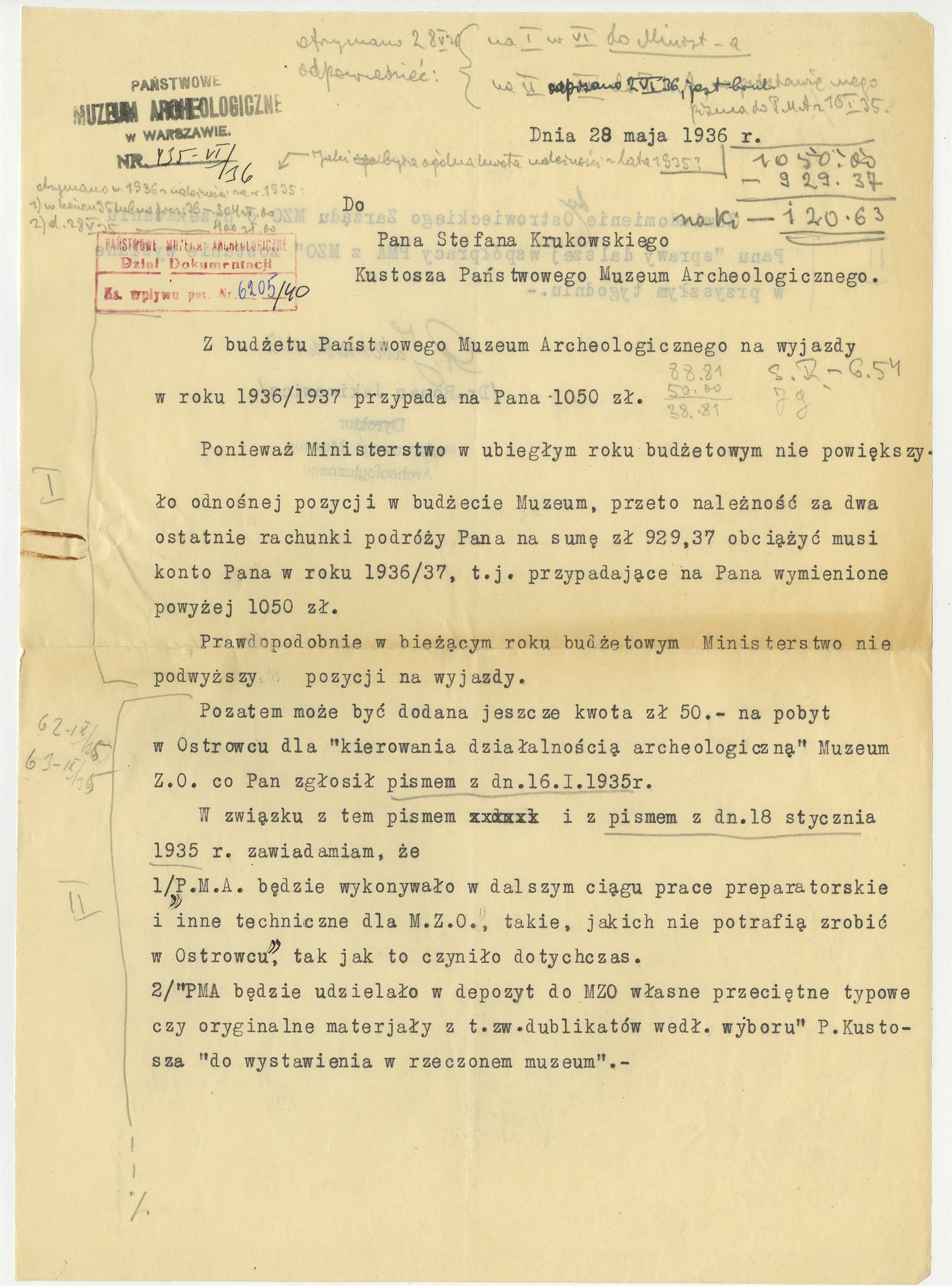 Pismo z PMA do prof. Stefana Krukowskiego z dnia 28 maja 1936 r.
