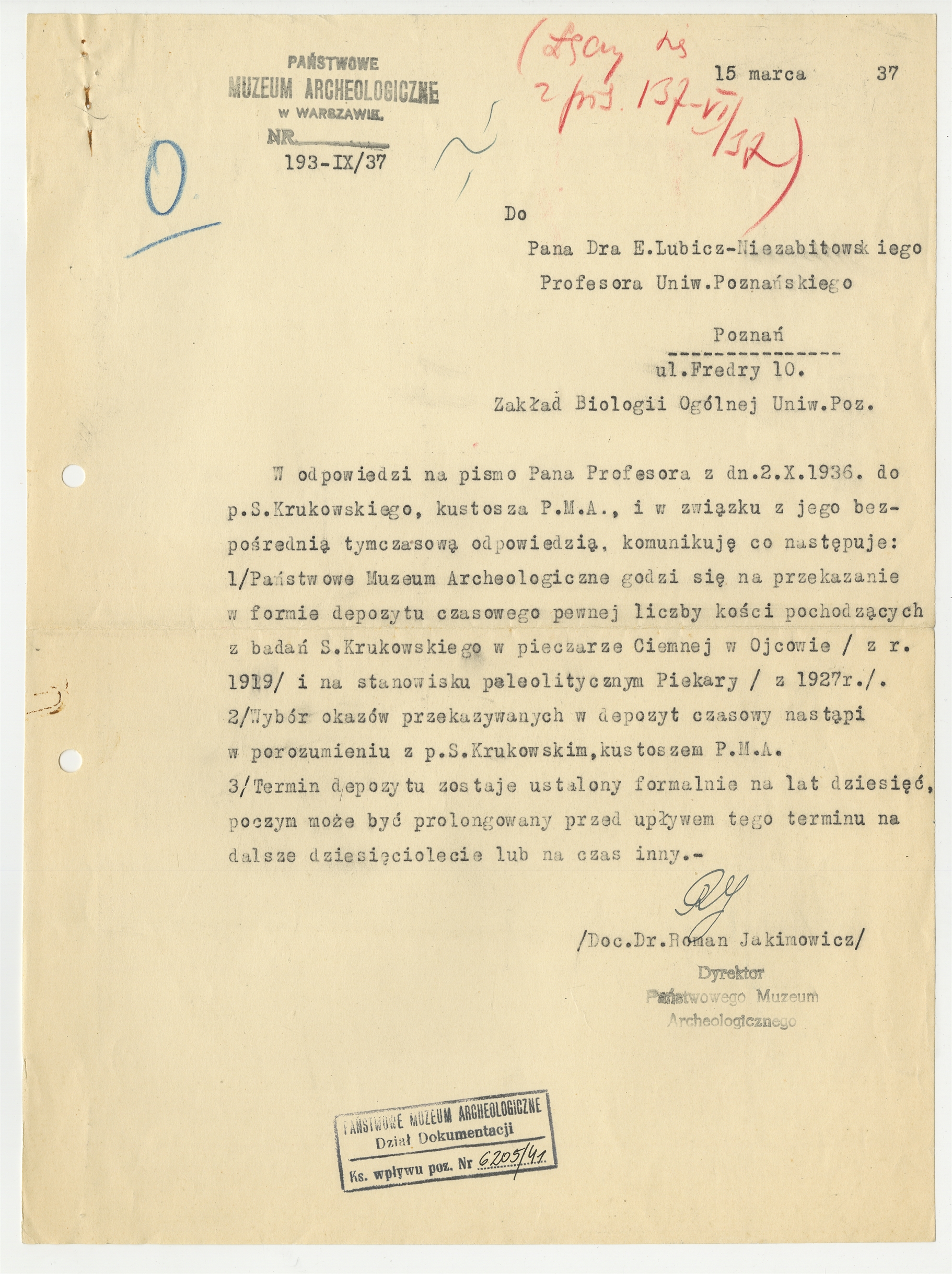 Pismo z PMA z dnia 15 marca 1937 "Do Pana Dra E. Lubicz-Niezabitowskiego"