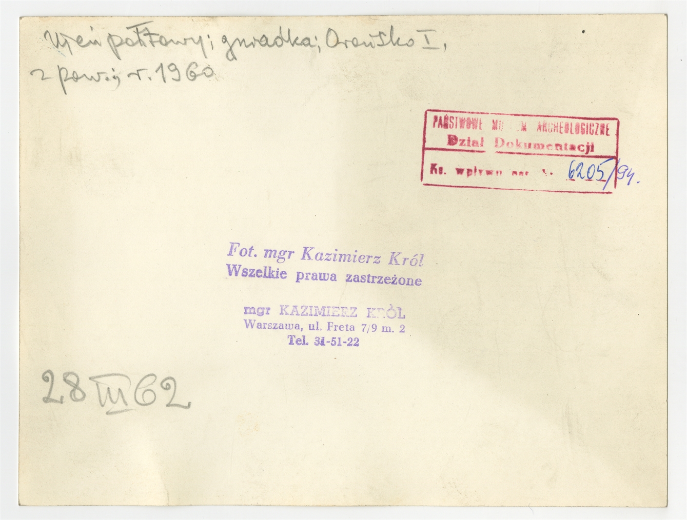 Podpis na odwrotnej stronie fotografii " Ułeń połtawy; gniadka; Orońsko I z pow.; r. 1960 29 III 62"