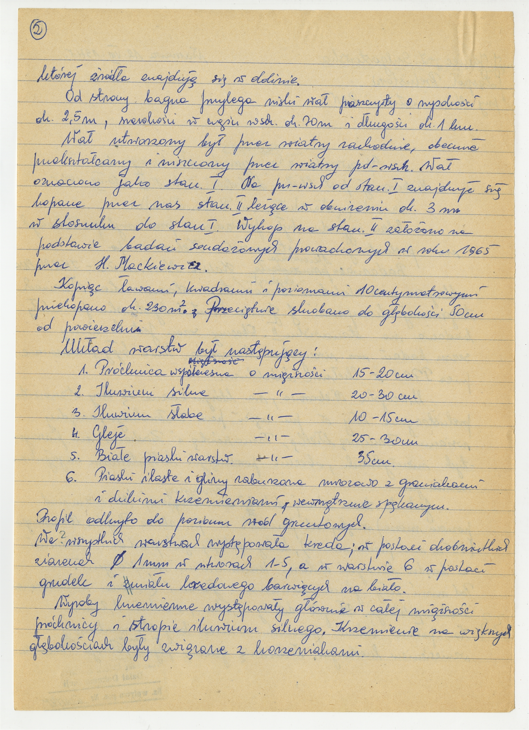 Rękopis - brudnopis dokumentu pt. "Sprawozdanie rzeczowe z wyjazdu służbowego do Nieborowej pow. Chełm Lubelski w dn. 10 VII-10 VIII 1971 r. na rozkopy stańska II wś Bukowa Wielka" sporządzony przez Jolantę Janiec oraz Zofię Sulgostowską członków Zespołu Prehistorii przy Muzeum Ziemi PAN Warszawa 12 VIII [19]71 r. - strona 2: "(...) której źródła znajdują się w dolinie (...)"