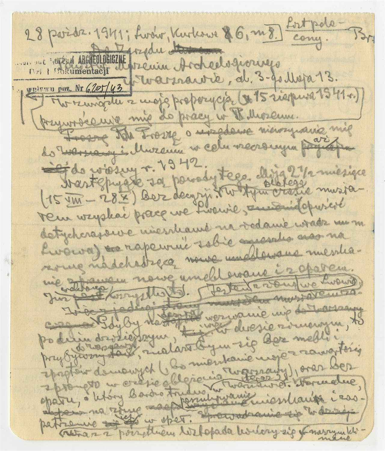 Rękopis - brudnopis dwóch listów Stefana Krukowskiego z dnia 28 października 1941 roku do Zarządu PMA w Warszawie