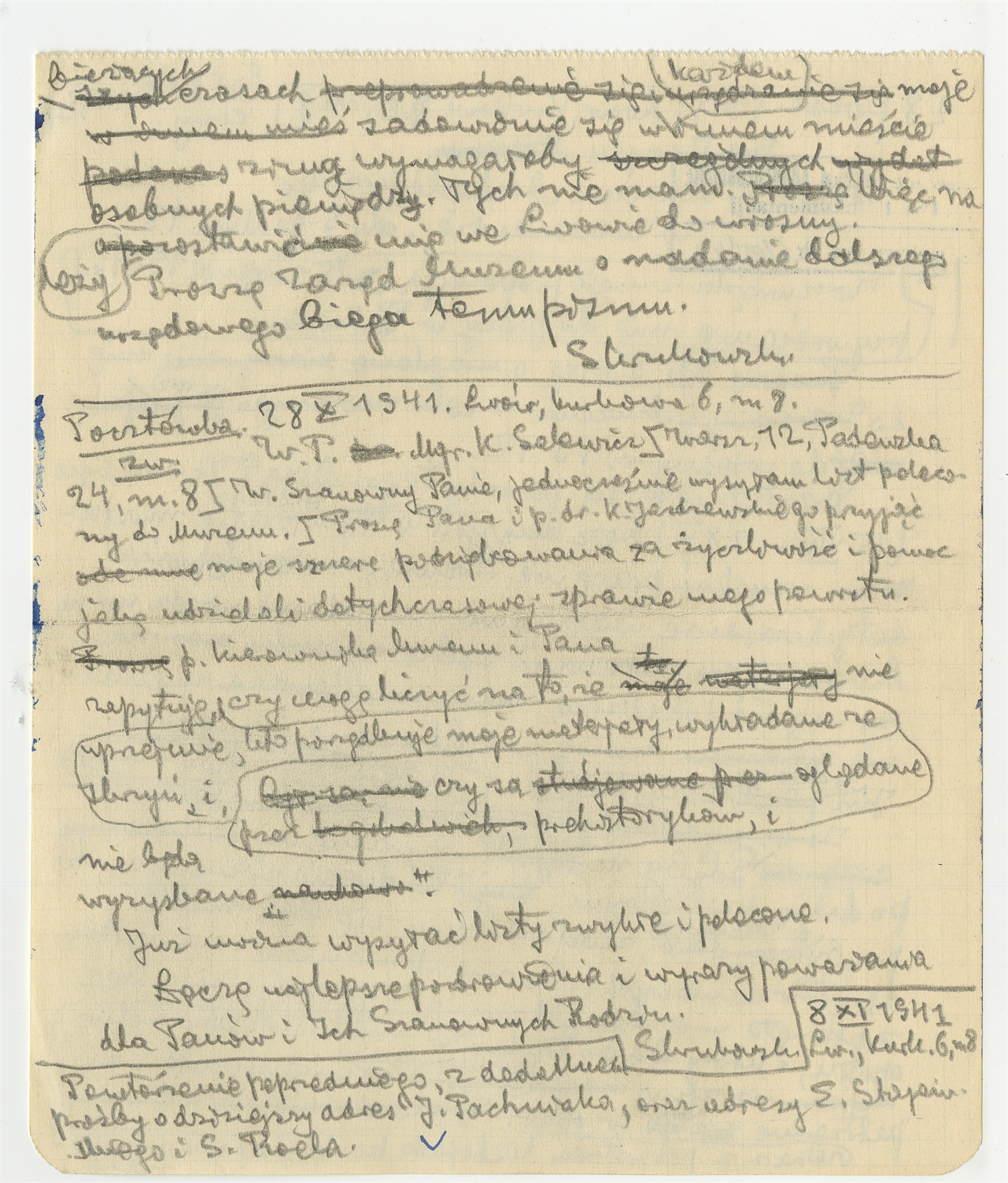 Rękopis - brudnopis dwóch listów Stefana Krukowskiego z dnia 28 października 1941 roku do Zarządu PMA w Warszawie (cd) oraz do K. Salewicza