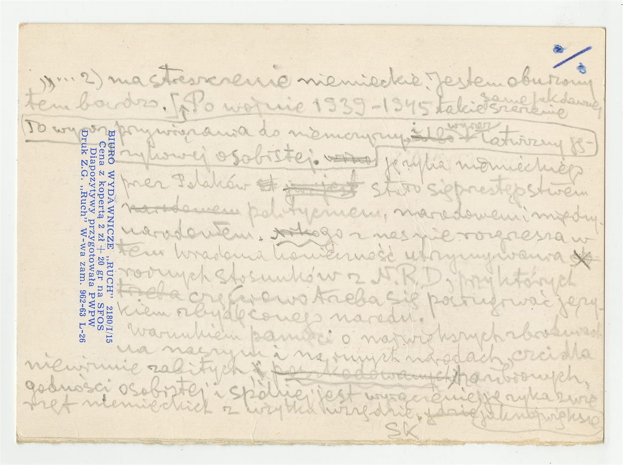 Rękopis - brudnopis listów Stefana Krukowskiego do Michała Kobusiewicza ze stycznia 1965 roku (cd)