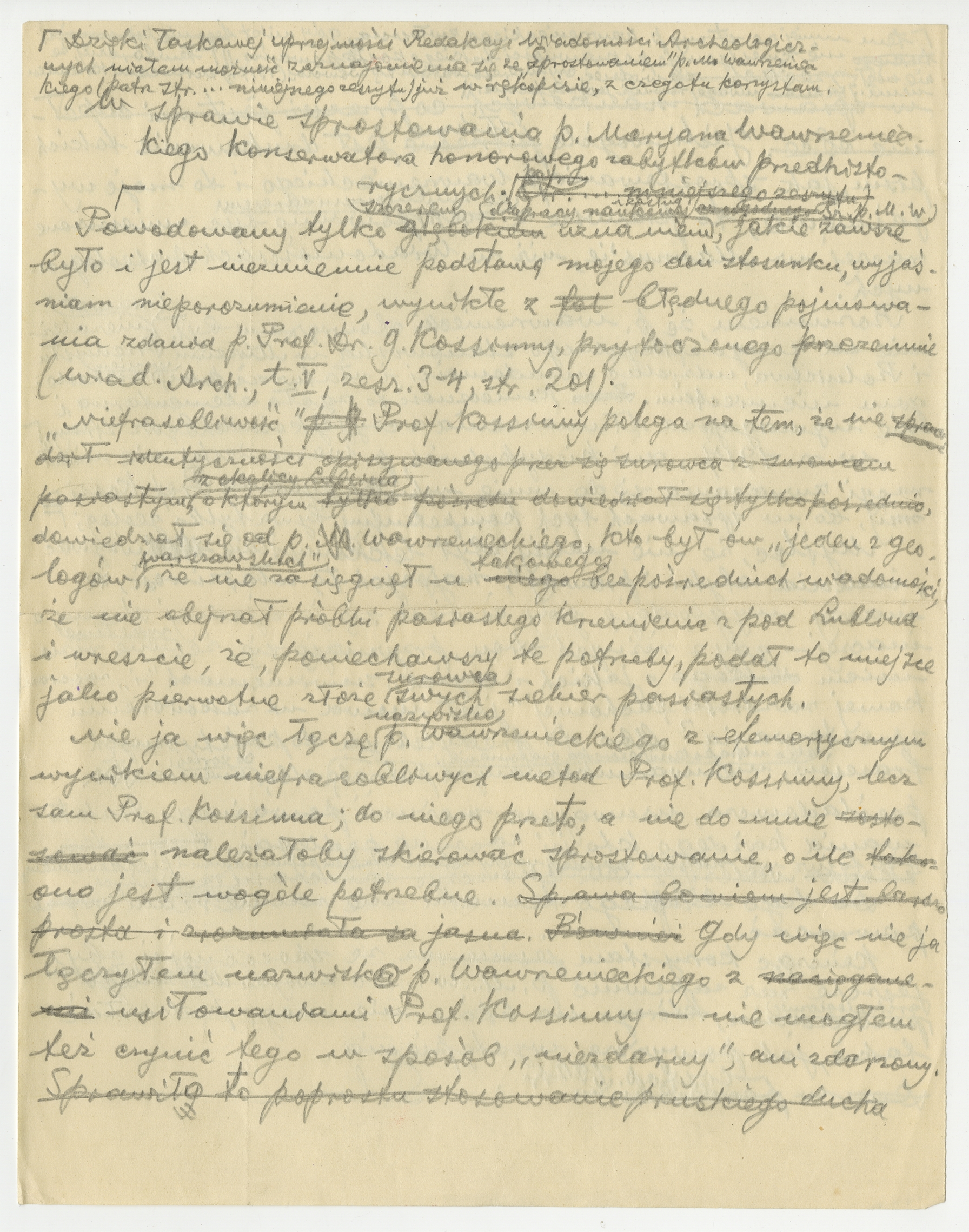 Rękopis - brudnopis listu do Redakcji Wiadomości Archeologicznych z dn. XI 1921 r.