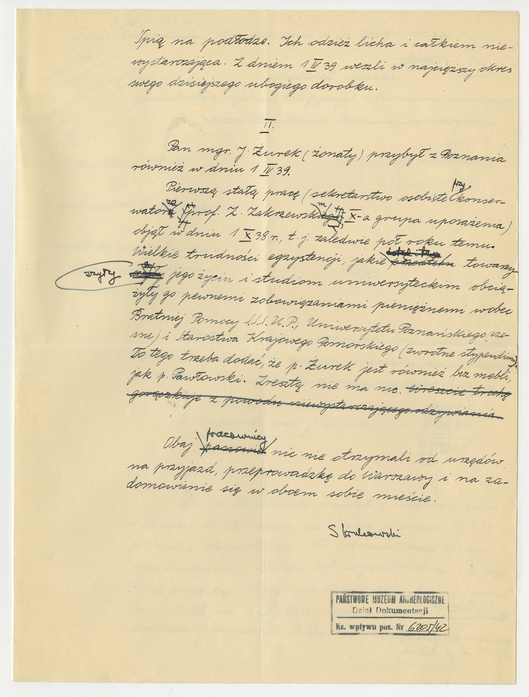 Rękopis - brudnopis listu NN z dnia 29 kwietnia do Wydziału Nauki w Ministerstwie W.R i O.P. w sprawie zasiłków osobistych dla pracowników. List sygnowany i poprawiony przez Stefana Krukowskiego (cd)