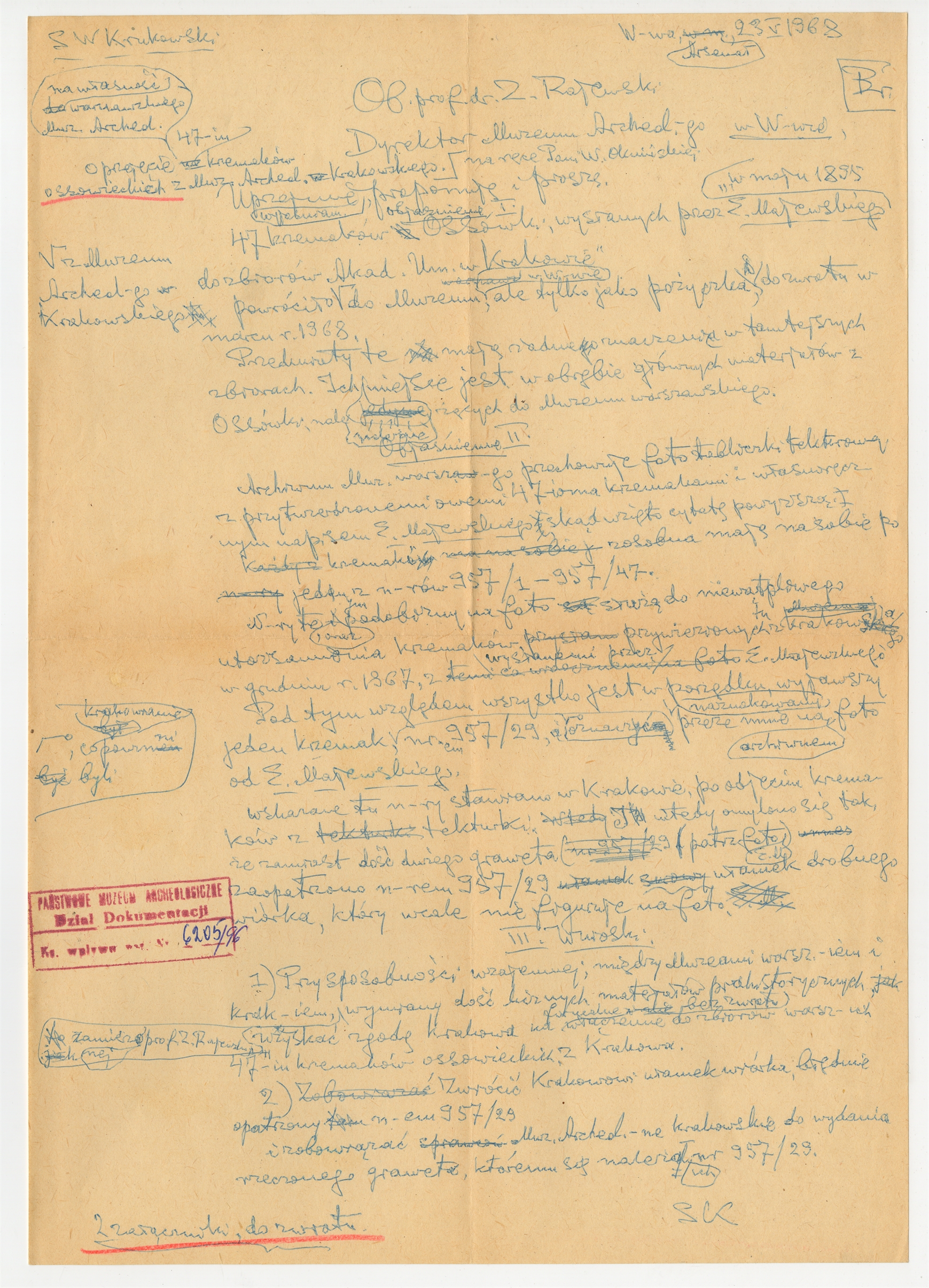 Rękopis-brudnopis listu prof. Stefana Krukowskiego z dnia 23 V 1968 r. napisany do prof. dr Z. Rajewskiego