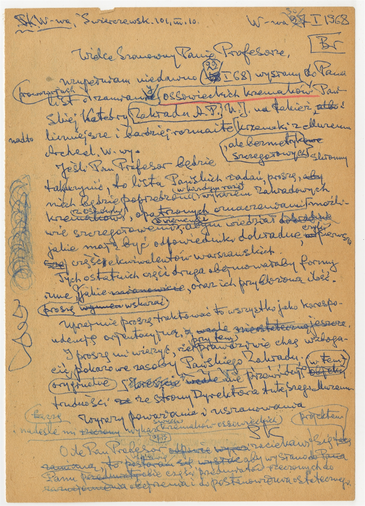 Rękopis-brudnopis listu prof. Stefana Krukowskiego z dnia 30 I [19]68
