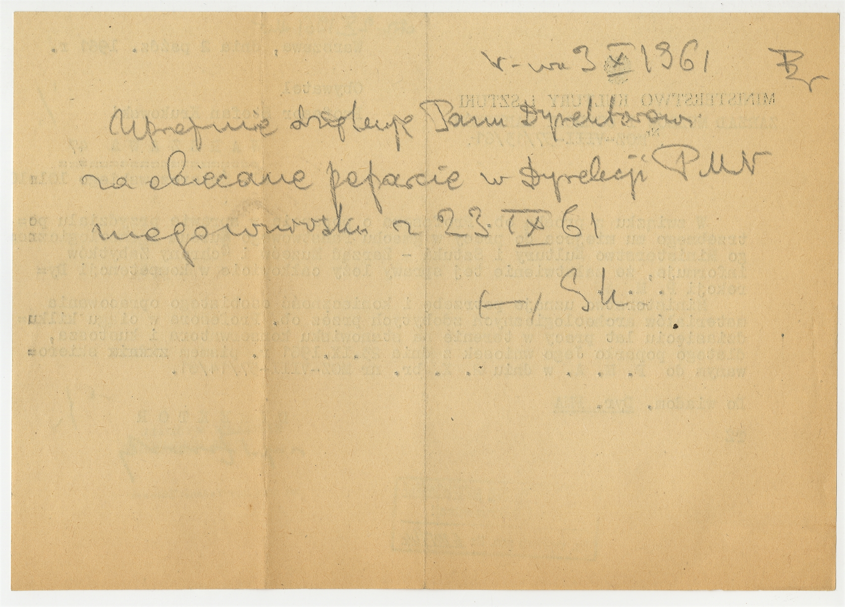 Rękopis - brudnopis listu S. Krukowskiego do Dyrekcji PAN z dn. 3 X 1961 r.