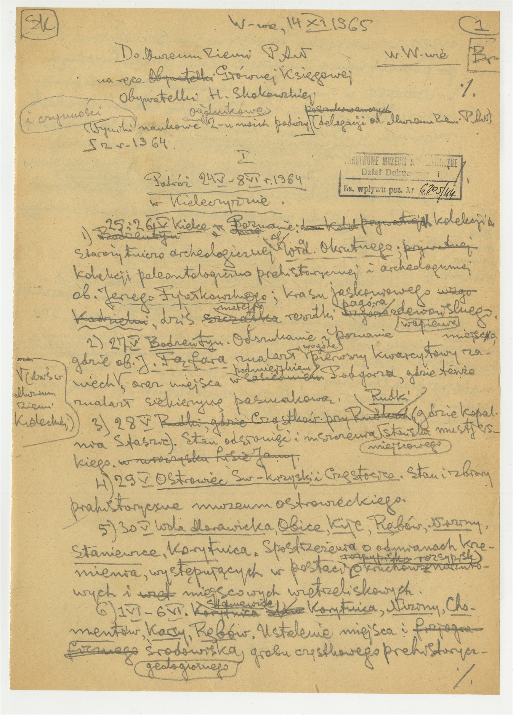Rękopis - brudnopis listu S. Krukowskiego do Głównej Księgowej Muzeum Ziemi PAN z dn. 14 XI 1965 r.