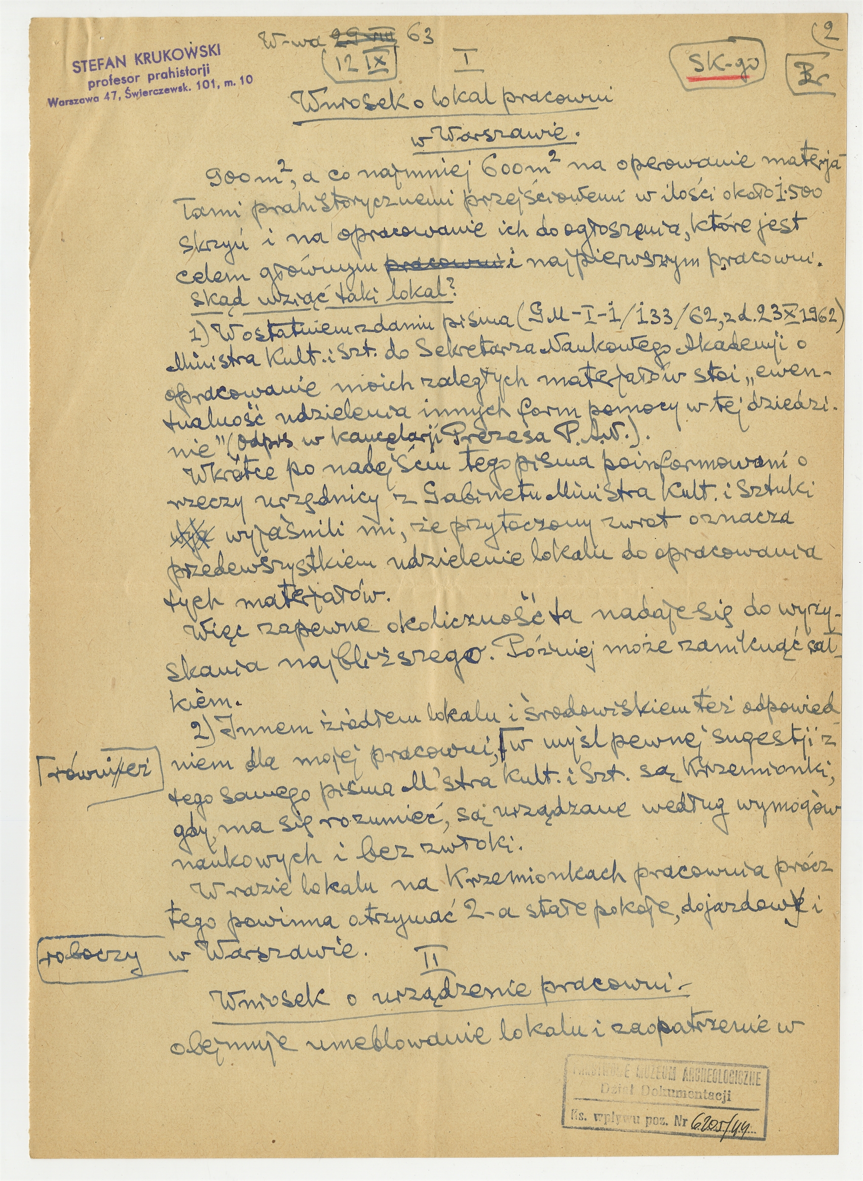 Rękopis - brudnopis listu S. Krukowskiego do H. Jabłońskiego Sekretarza Naukowego PAN z dn. 12 IX 1963 r. Strona 2