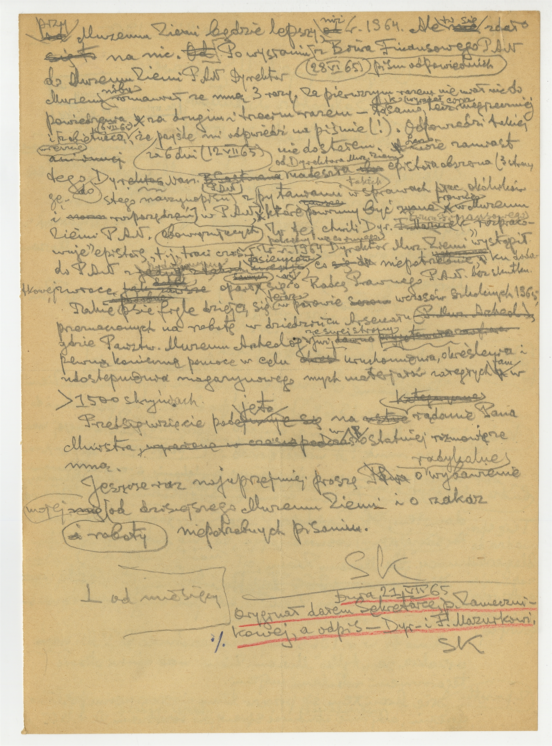 Rękopis - brudnopis listu S. Krukowskiego do H. Jabłońskiego Sekretarza Naukowego PAN z dn. 21 VII 1965 r. (cd)