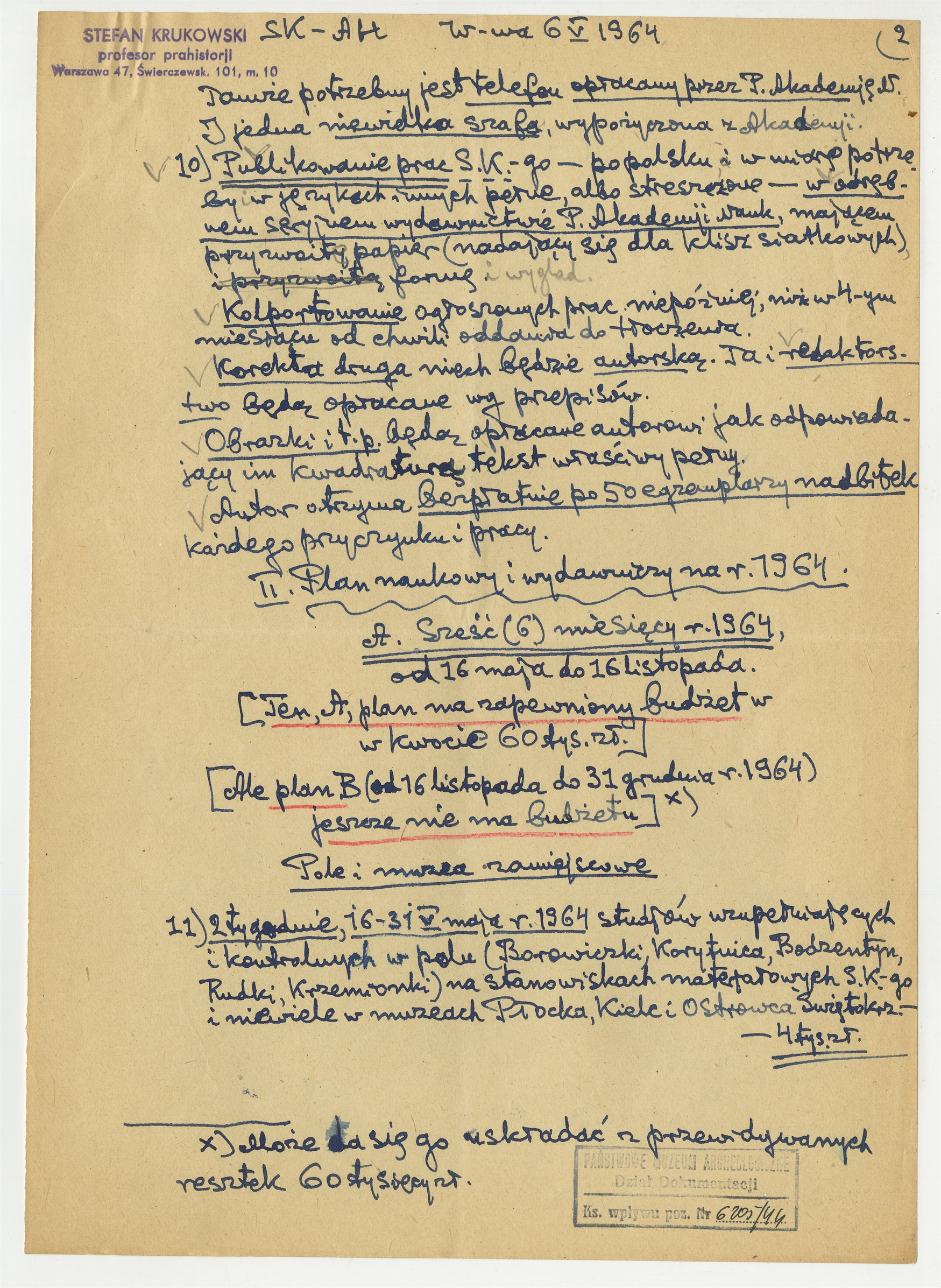 Rękopis - brudnopis listu S. Krukowskiego do A. Halickiej Dyrektora Muzeum Ziemi z dn. 6 V 1964 r. Strona 2