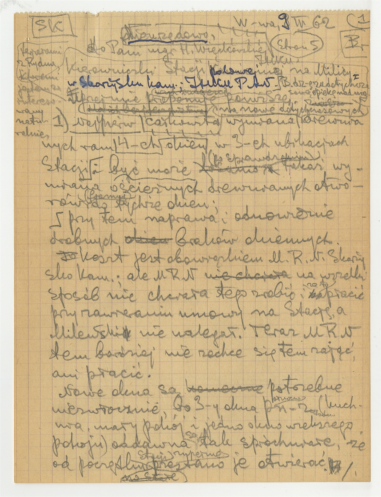 Rękopis - brudnopis listu S. Krukowskiego do Haliny Więckowskiej Kierowniczki Stacji polowej na Milicy z dn. 9 [8] III [19]62 r.; Strona 1