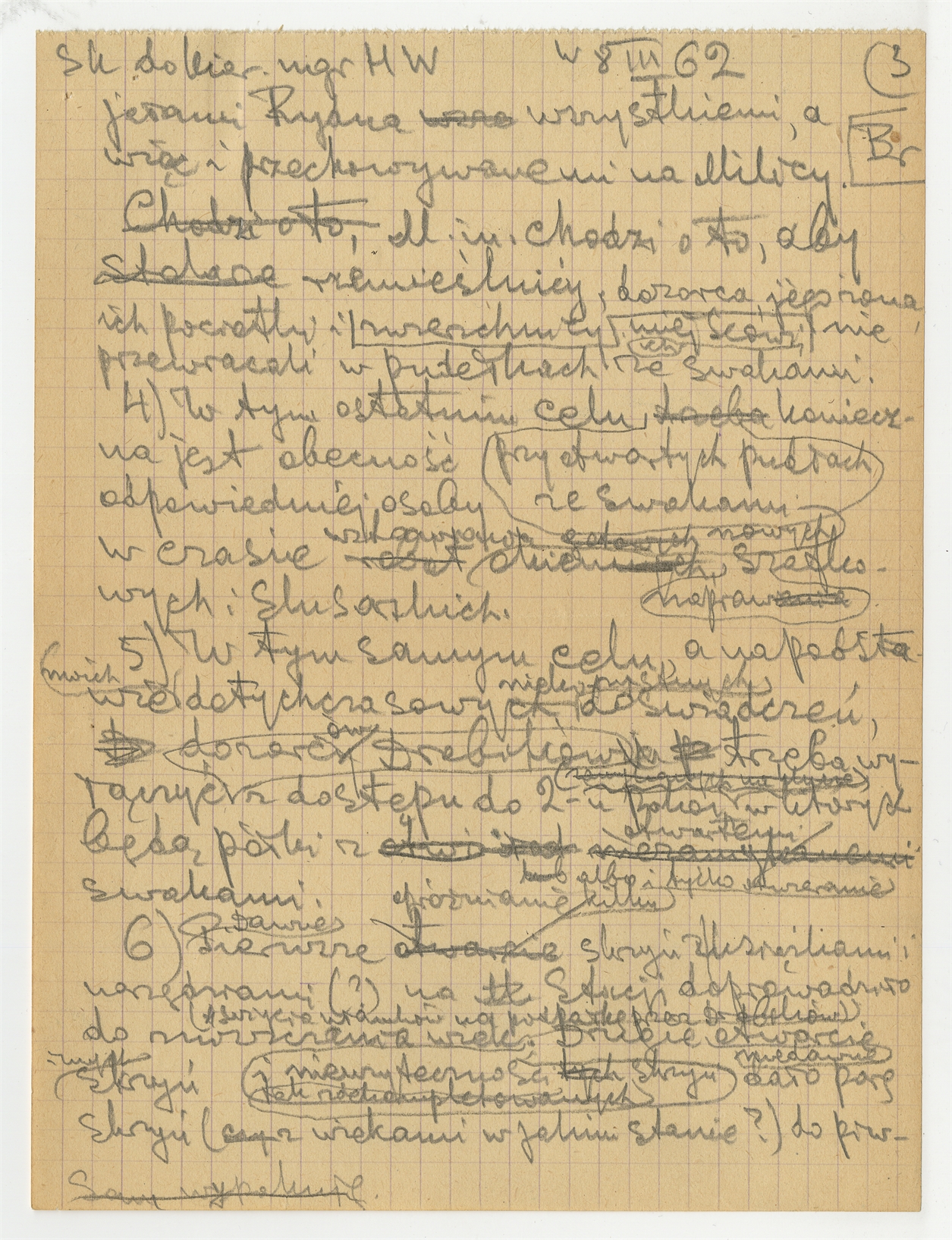 Rękopis - brudnopis listu S. Krukowskiego do Haliny Więckowskiej Kierowniczki Stacji polowej na Milicy z dn. 9 [8] III [19]62 r.; Strona 3