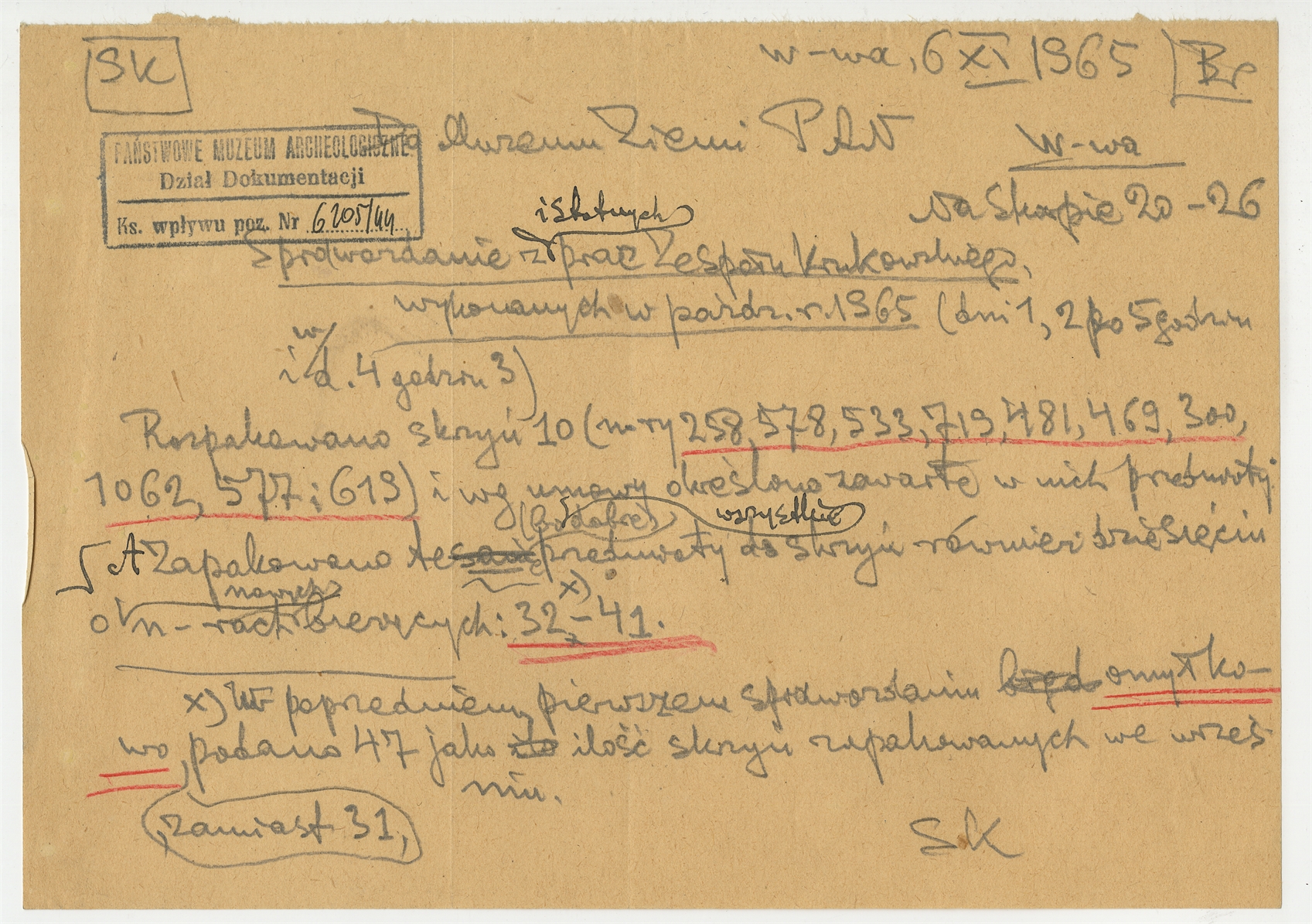 Rękopis - brudnopis listu S. Krukowskiego do Muzeum Ziemi PAN z dn. 6 XI 1965 r.