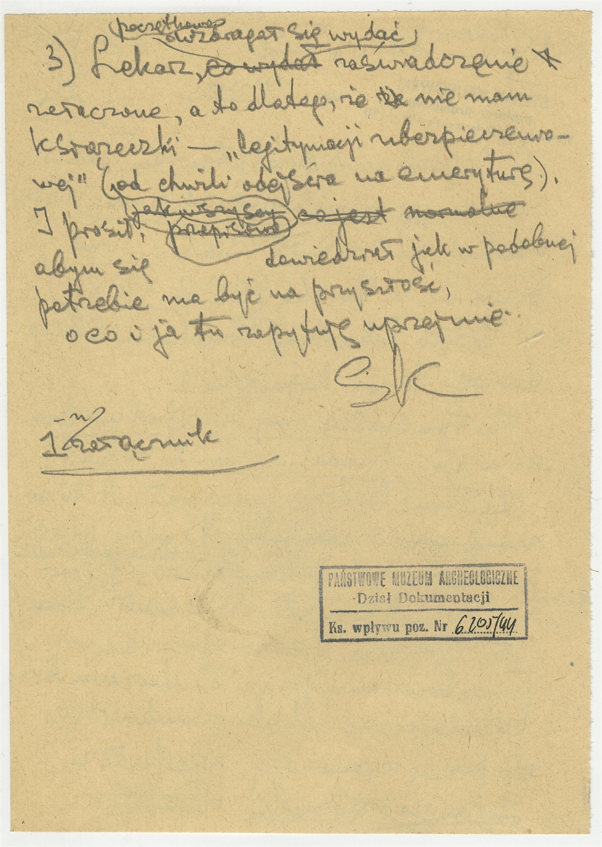 Rękopis - brudnopis listu S. Krukowskiego do Muzeum Ziemi PAN z dn. 8 X 1965 r. (cd)