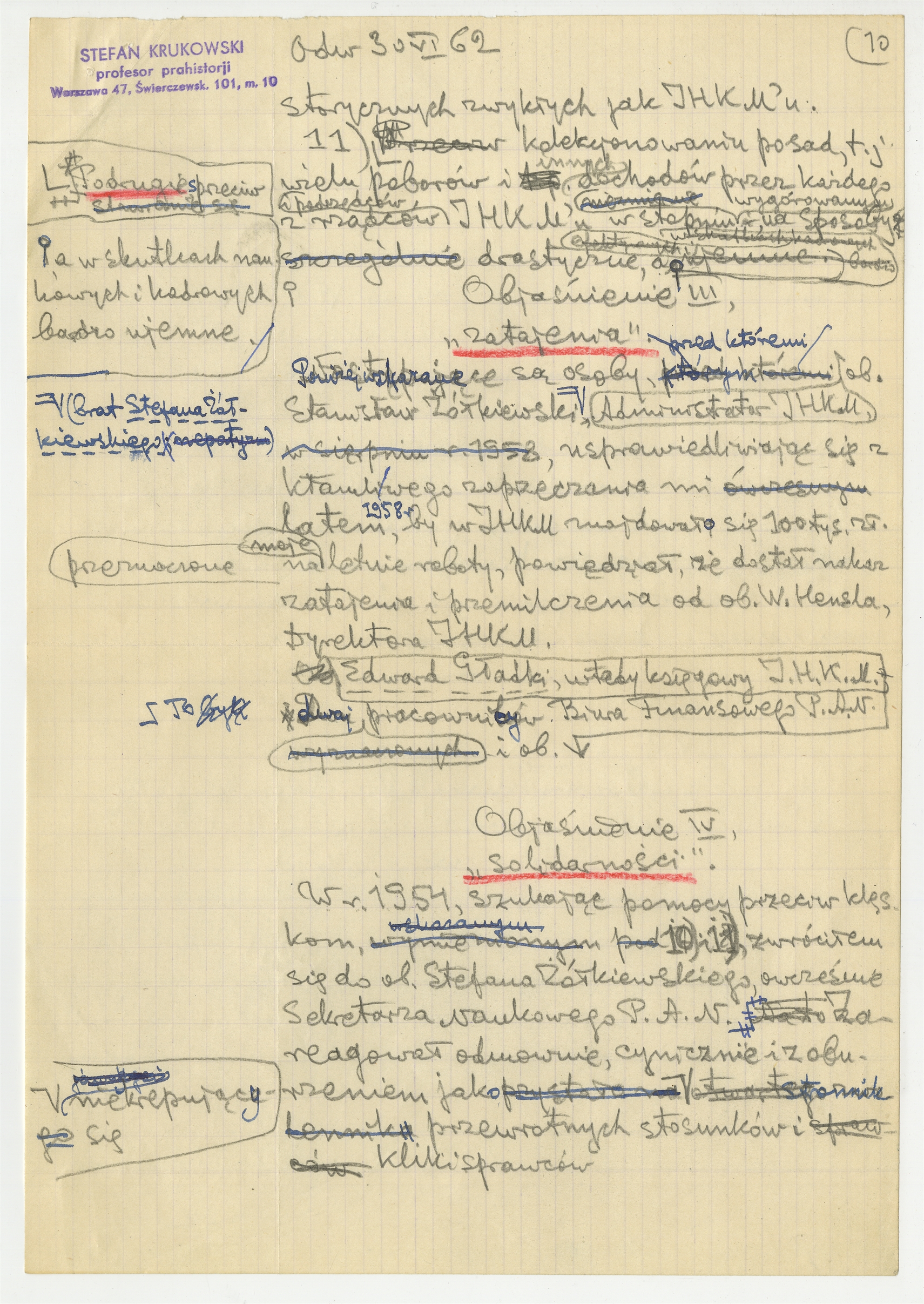 Rękopis - brudnopis listu S. Krukowskiego do Prezydium PAN z dn. 30 VI 1962 r. Strona 10