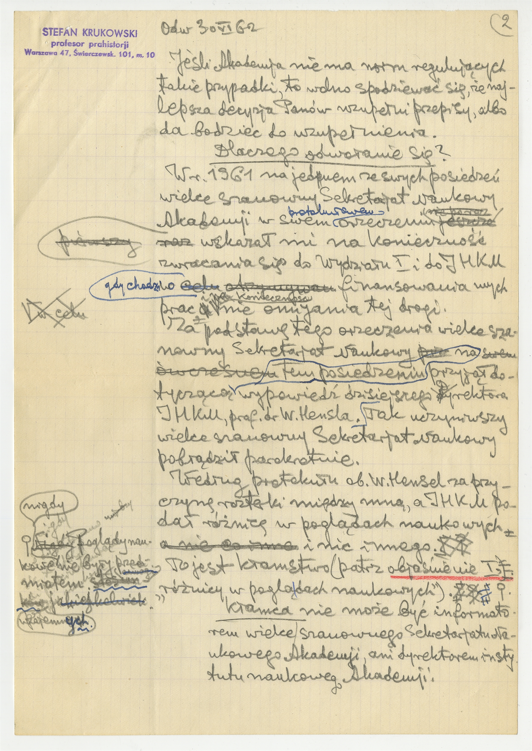 Rękopis - brudnopis listu S. Krukowskiego do Prezydium PAN z dn. 30 VI 1962 r. Strona 2