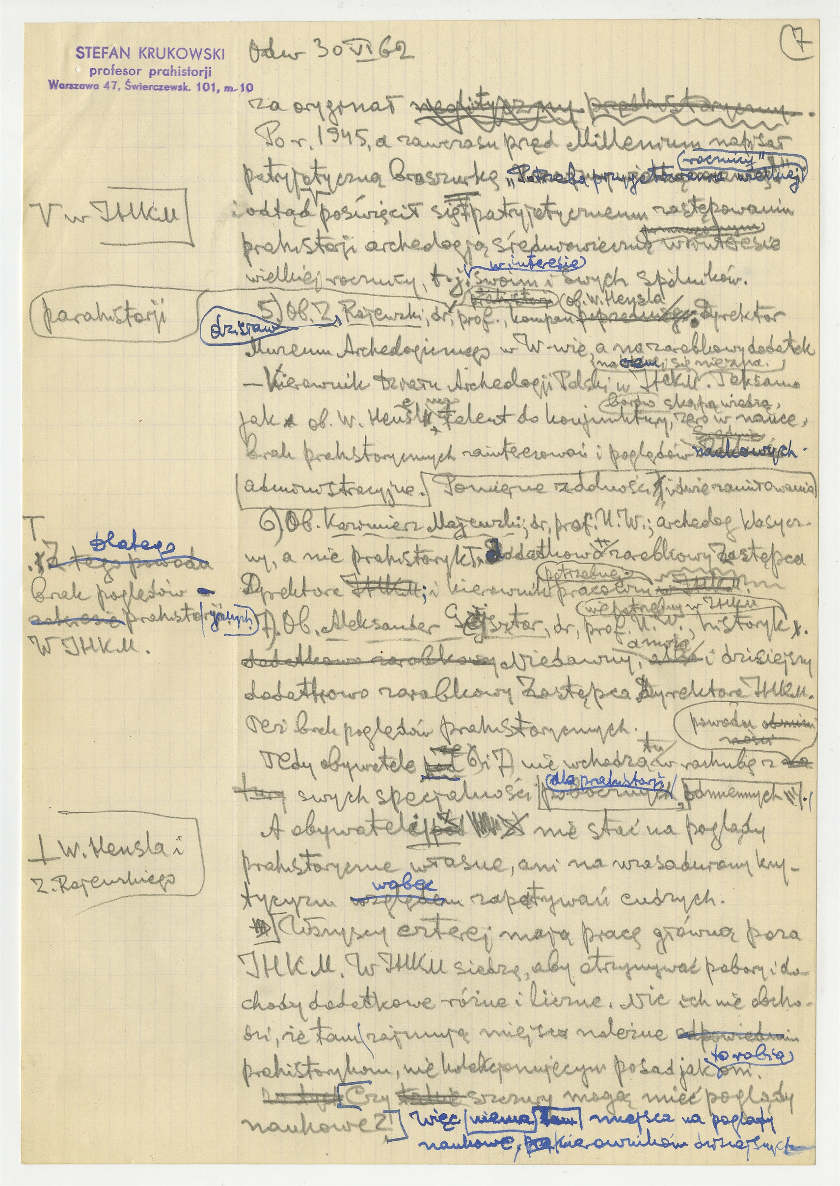 Rękopis - brudnopis listu S. Krukowskiego do Prezydium PAN z dn. 30 VI 1962 r. Strona 7