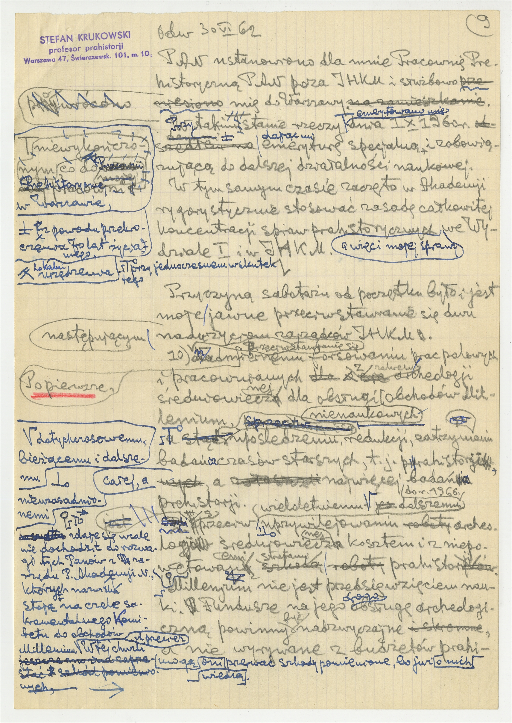 Rękopis - brudnopis listu S. Krukowskiego do Prezydium PAN z dn. 30 VI 1962 r. Strona 9