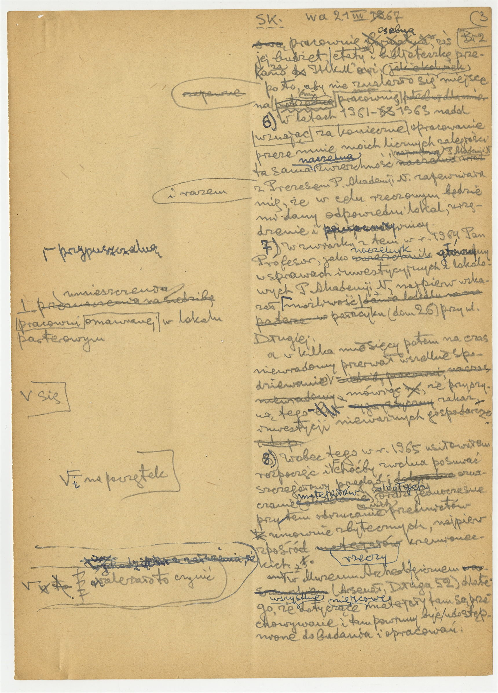 Rękopis - brudnopis listu S. Krukowskiego do W. Nowackiego Sekretarza Naukowego PAN z dn. 21 III 1967 r. Strona 3