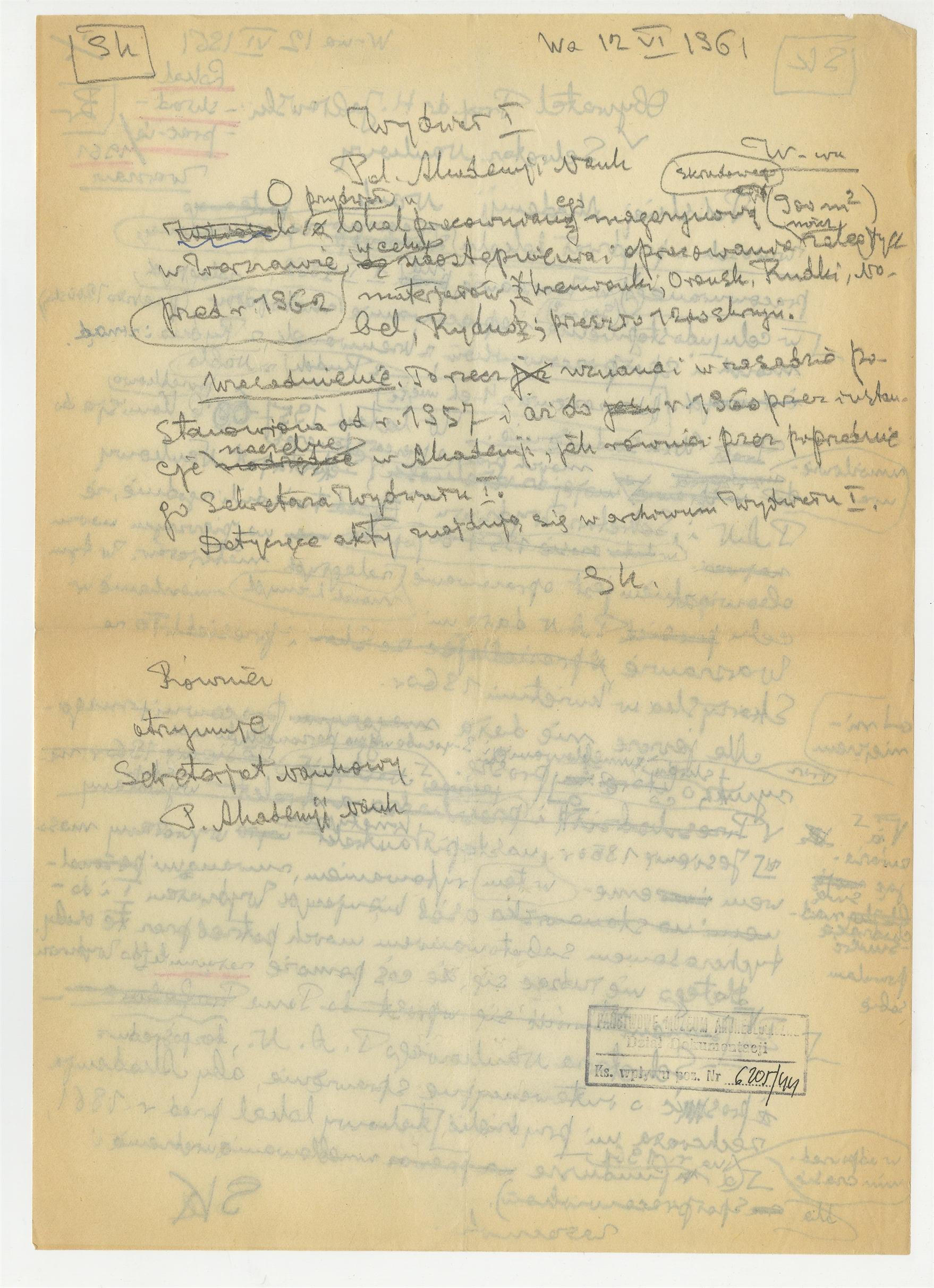 Rękopis - brudnopis listu S. Krukowskiego do Wydziału I PAN z dn. 12 VI 1961 r.