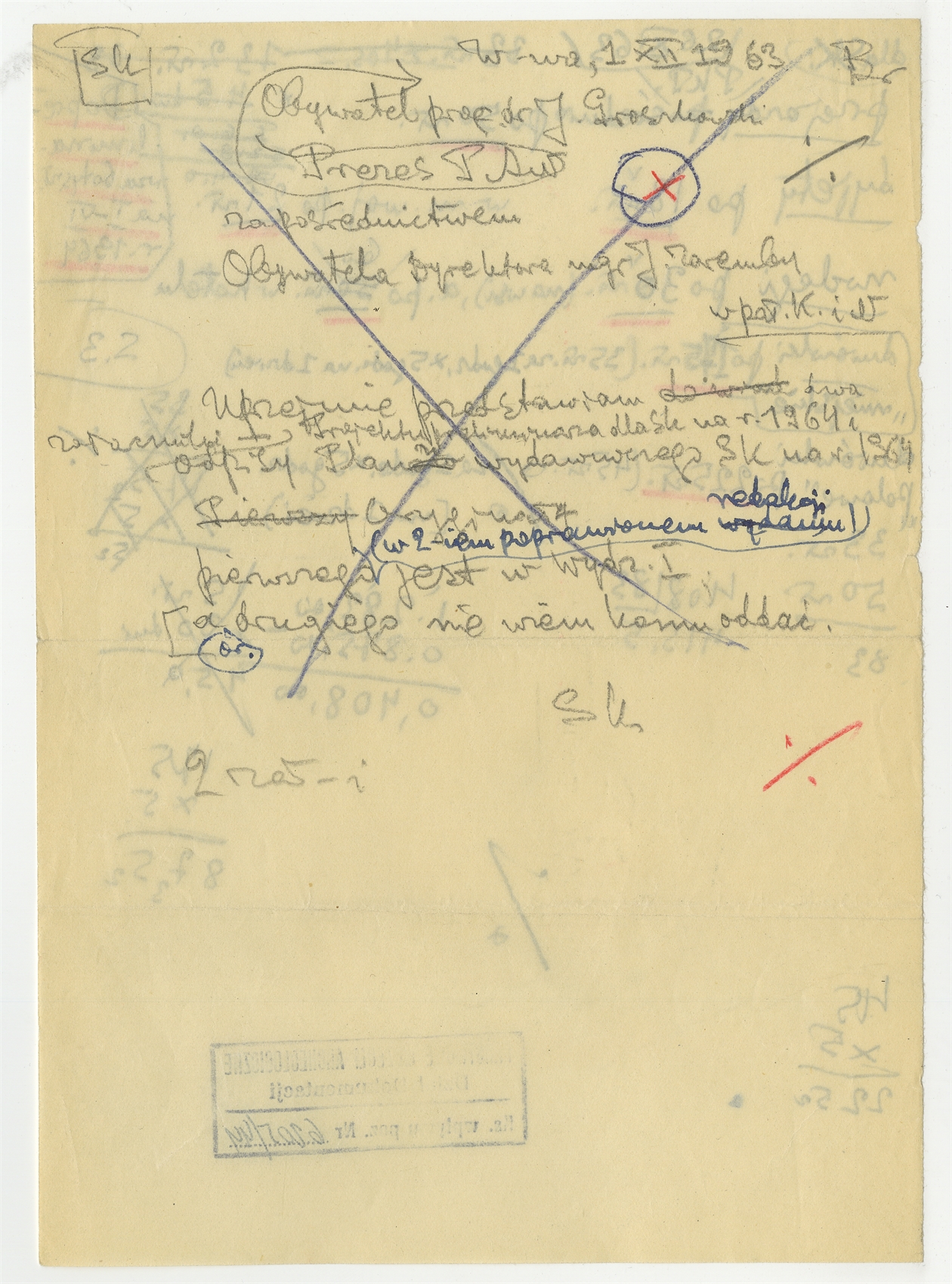 Rękopis - brudnopis listu S. Krukowskiego z dnia 1 XII 1063 roku do Prezesa PAN
