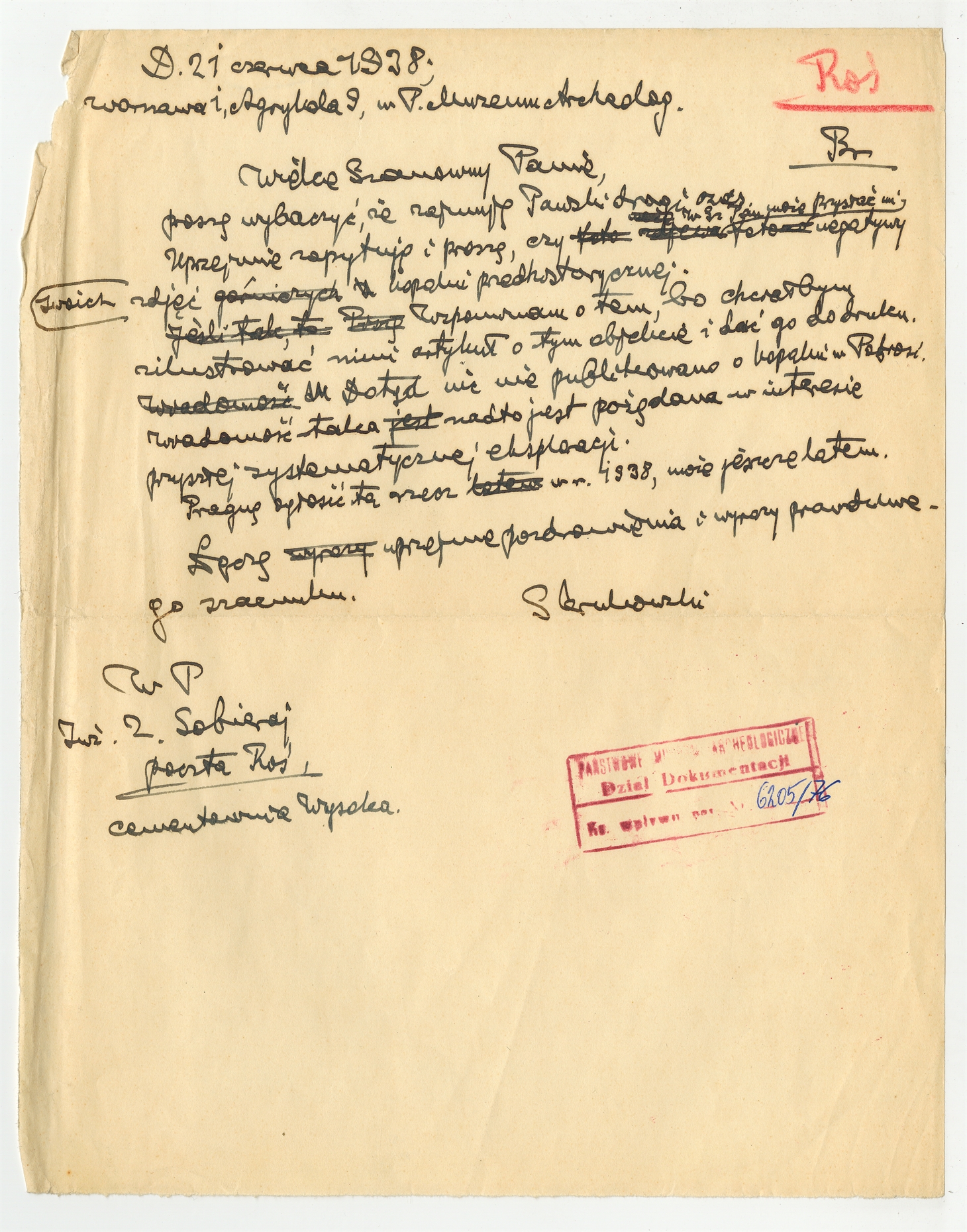 Rękopis - brudnopis listu Sefana Krukowskiego z dnia 21 czerwca 1938 roku do inż. Z. Sobieraja