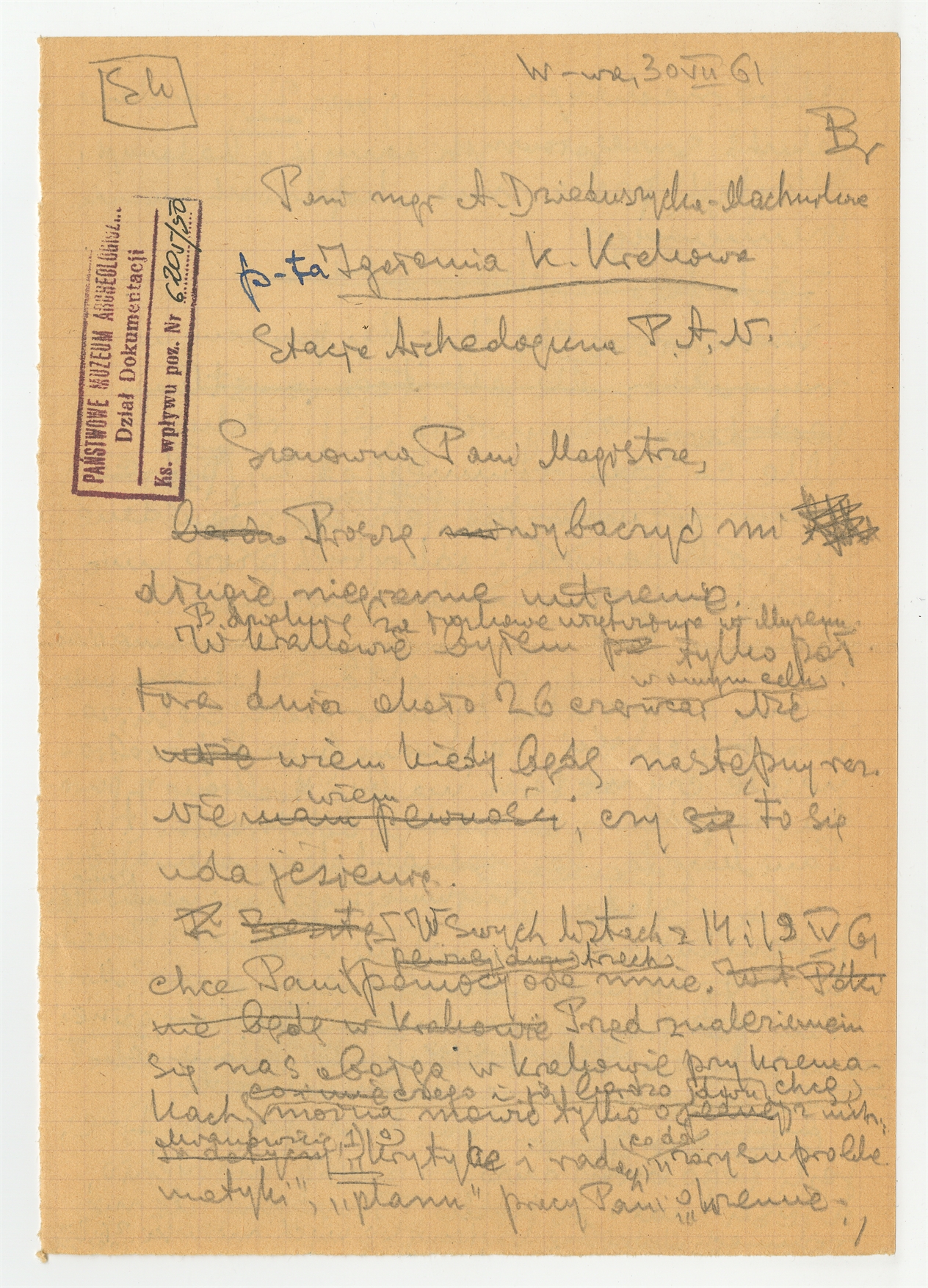 Rękopis - brudnopis listu Stefana Krukowskiego do Anny Dzieduszyckiej-Machnikowej z dn. 30 VII [19]61 r.