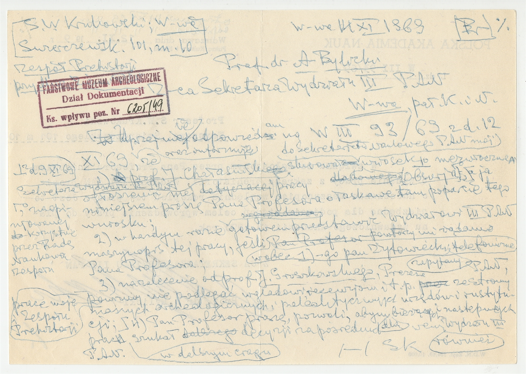 Rękopis - brudnopis listu Stefana Krukowskiego do A.Bylickiego z dn. 14 XI 1969 r.