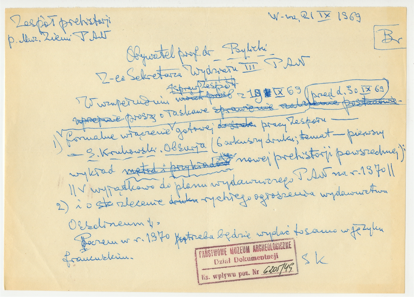 Rękopis - brudnopis listu Stefana Krukowskiego do A. Bylickiego z dn. 21 IX 1969 r.