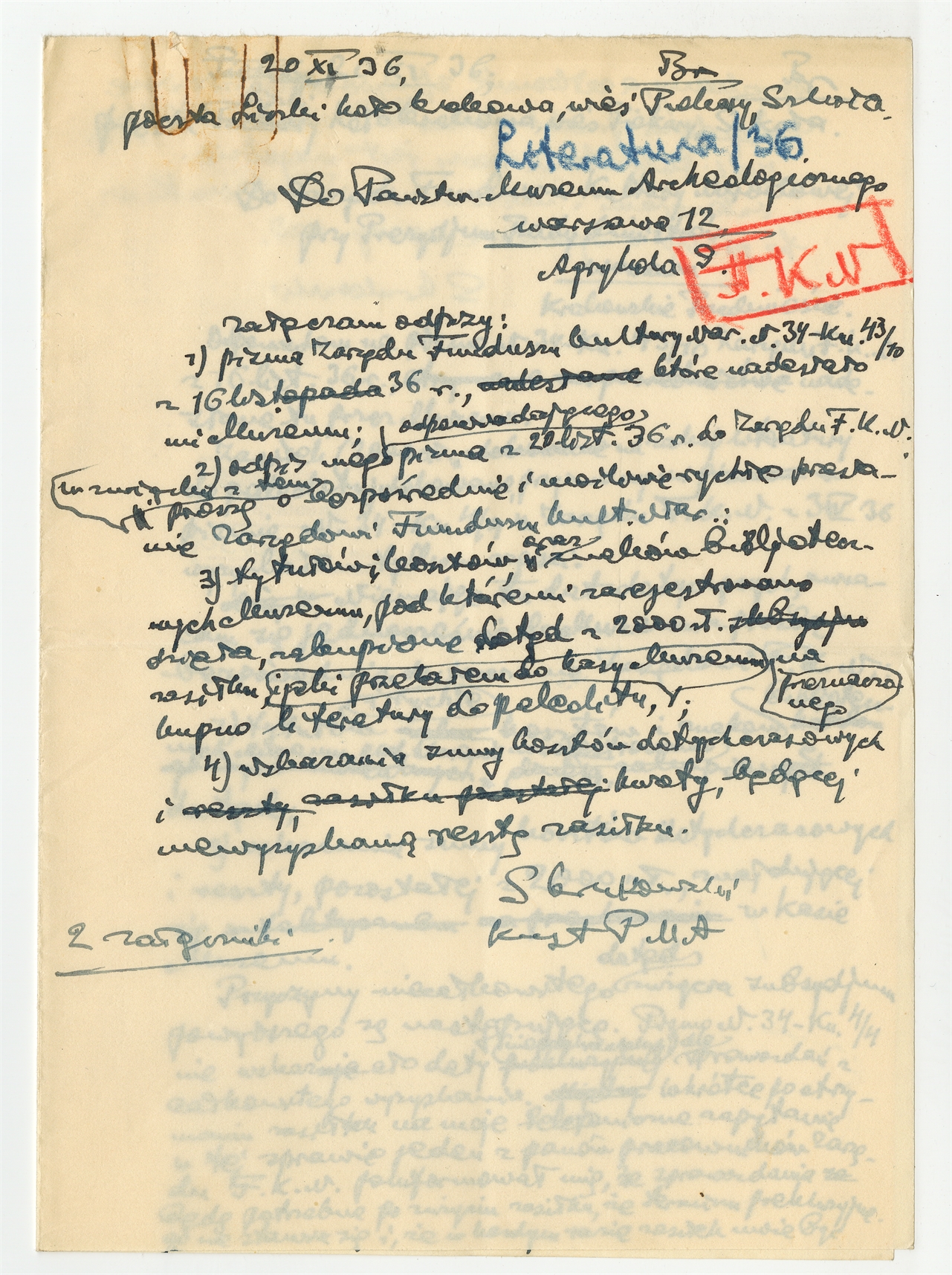 Rękopis - brudnopis listu Stefana Krukowskiego do Dyrekcji PMA z dn. 20 XI [19]36 r.