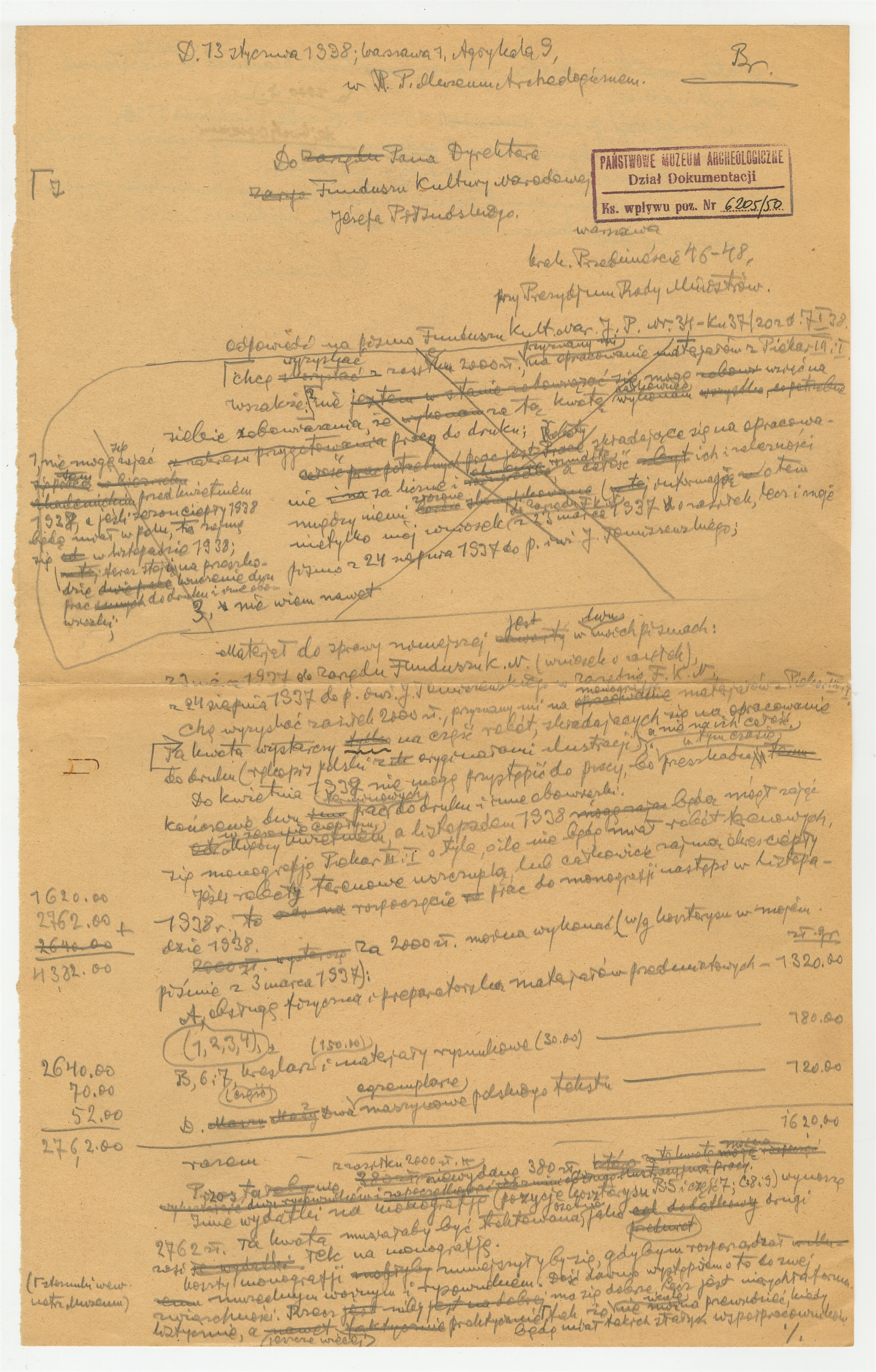 Rękopis - brudnopis listu Stefana Krukowskiego do Dyrektora Funduszu Kultury Narodowej Józefa Piłsudskiego z dn. 13 I 1938 r.