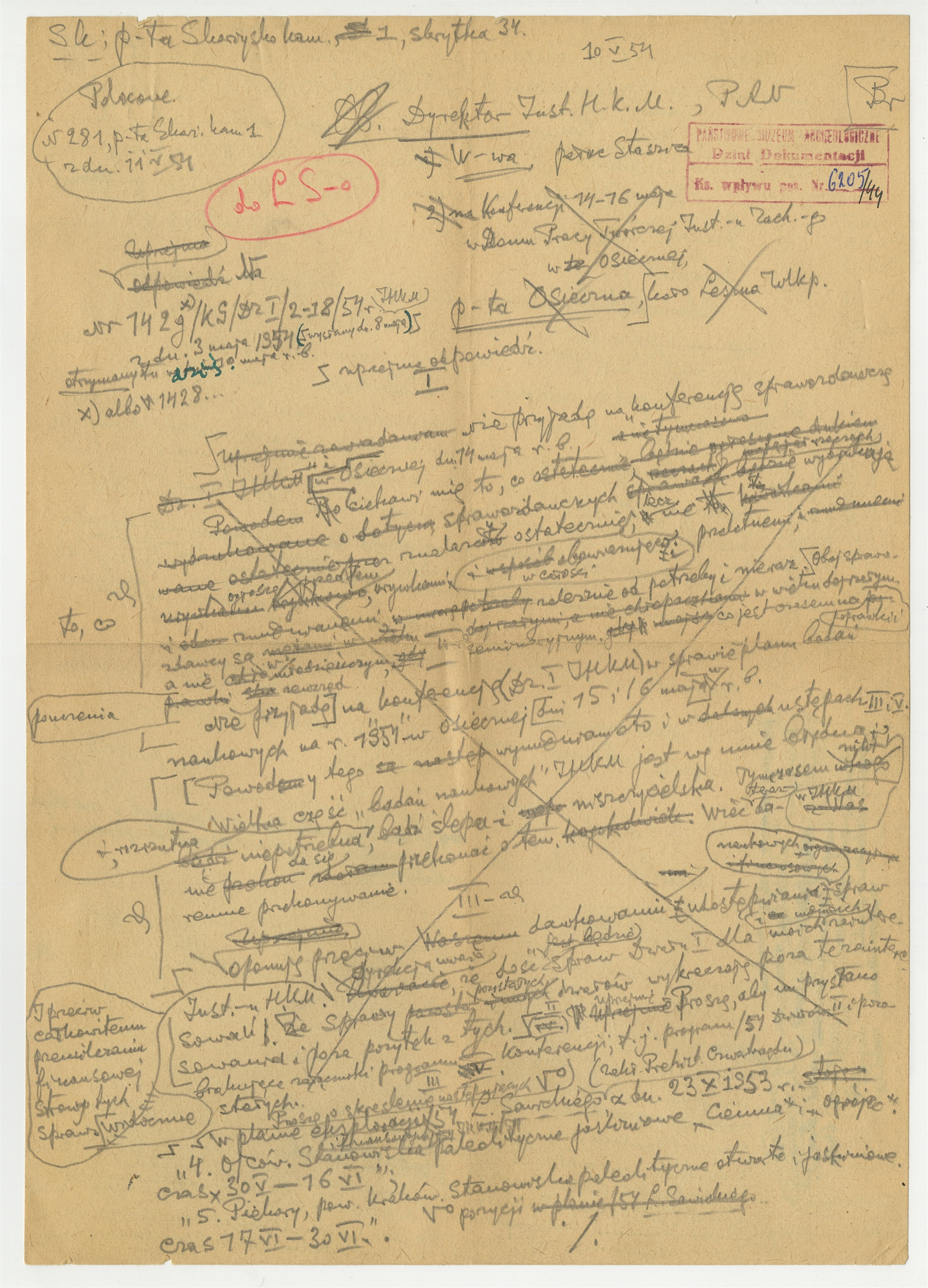 Rękopis - brudnopis listu Stefana Krukowskiego do Dyrektora IHKM PAN z dn. 10 V [19]54 r.