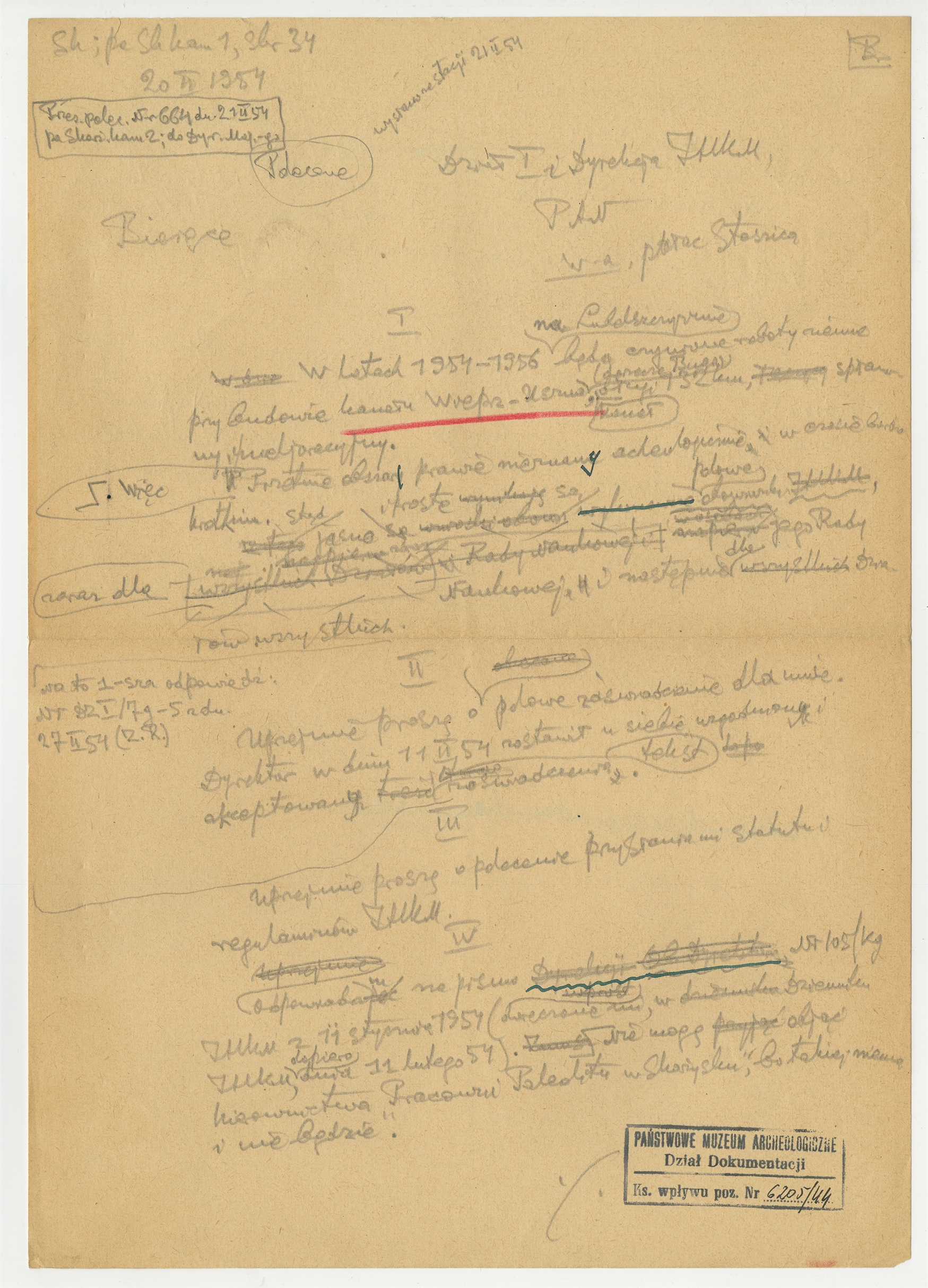 Rękopis - brudnopis listu Stefana Krukowskiego do Działu I i Dyrekcji IHKM PAN z dn. 20 II 1954 r.