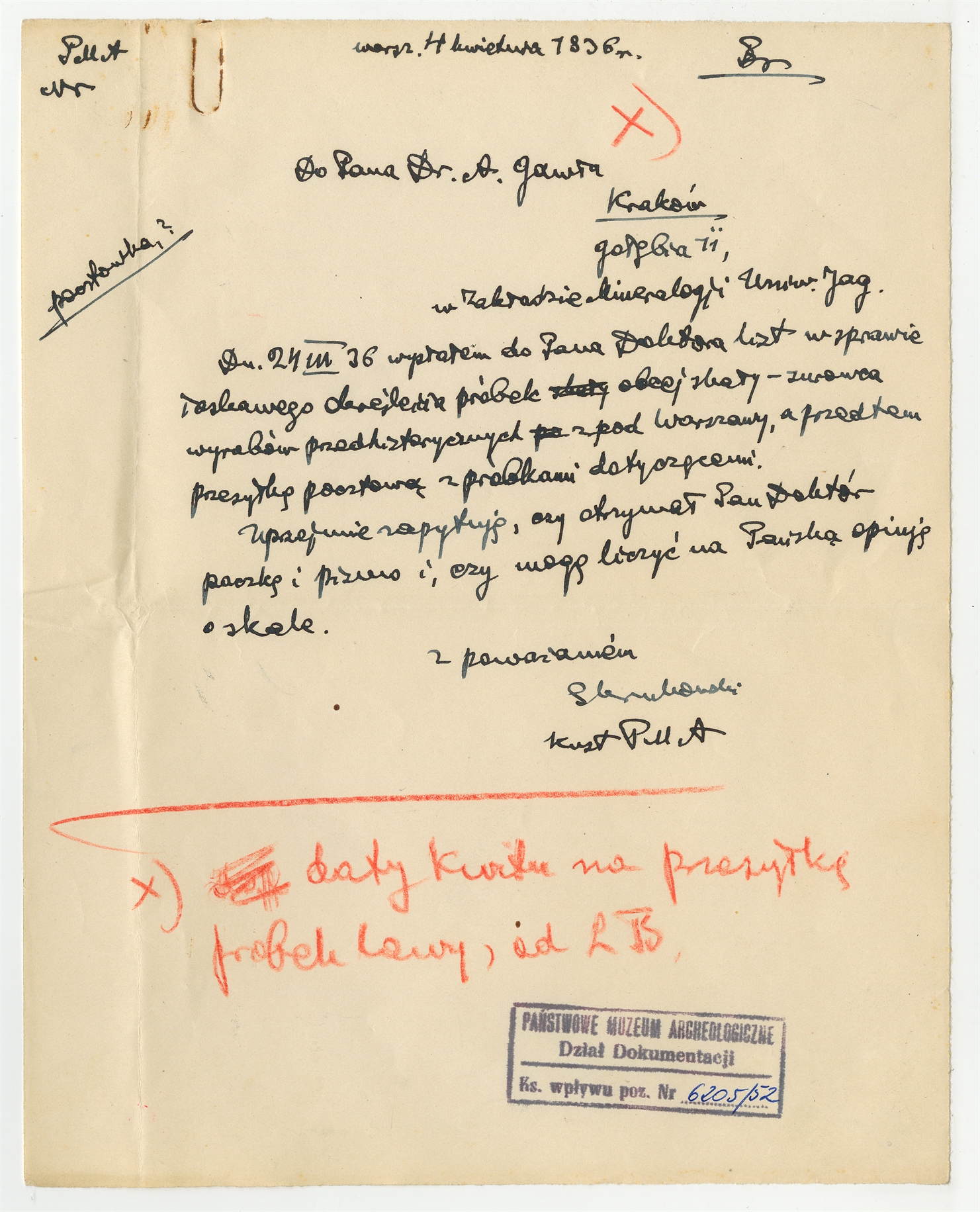 Rękopis - brudnopis listu Stefana Krukowskiego do A Gawła z dnia 4 kwietnia 1936 roku