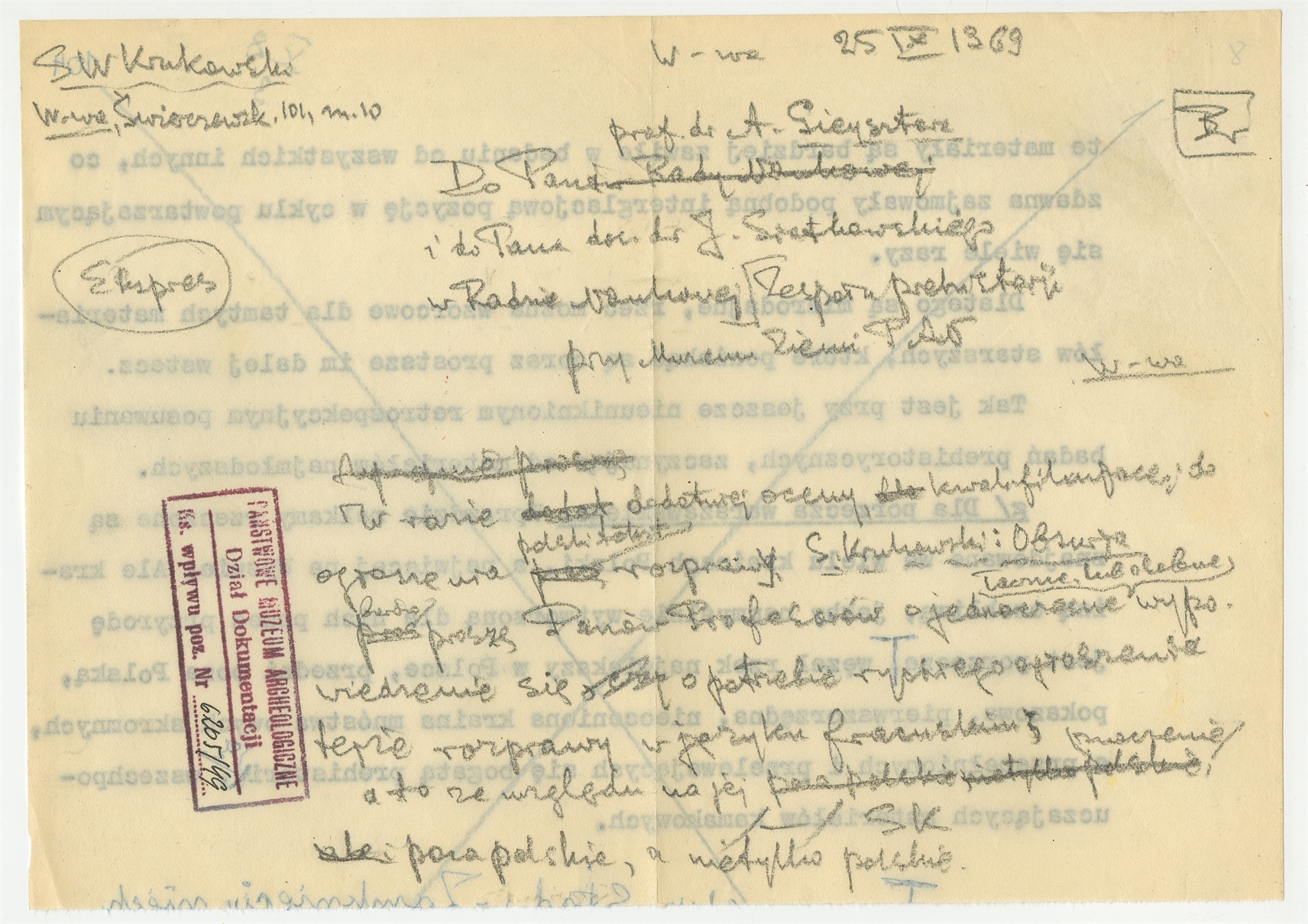 Rękopis - brudnopis listu Stefana Krukowskiego do A. Gieysztora z dn. 25 IX 1969 r.