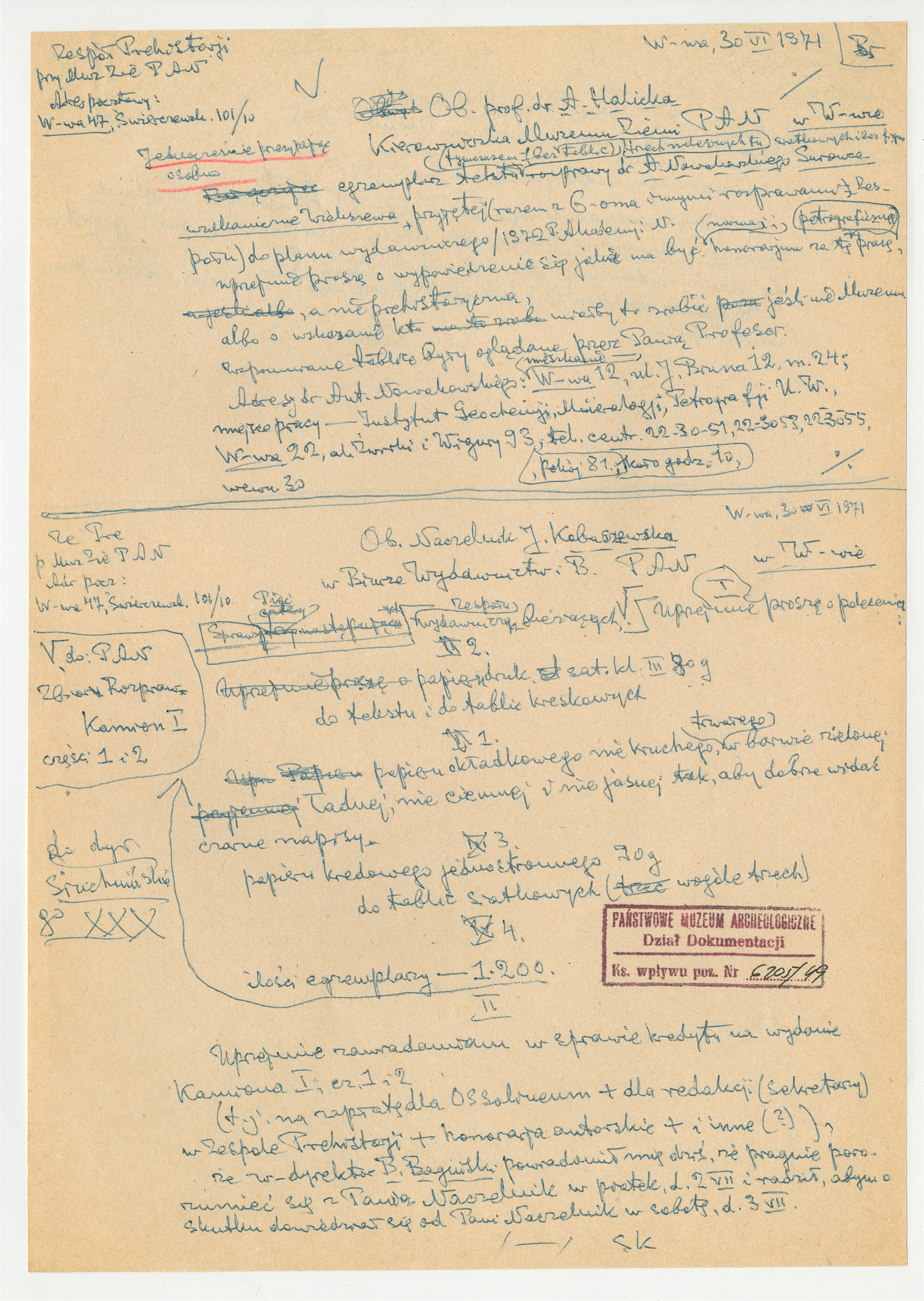 Rękopis - brudnopis listu Stefana Krukowskiego do A. Halickiej z dn. 30 VI 1971 r.; Rękopis - brudnopis listu Stefana Krukowskiego do J. Kobuszewskiej z dn. 30 VI 1971 r