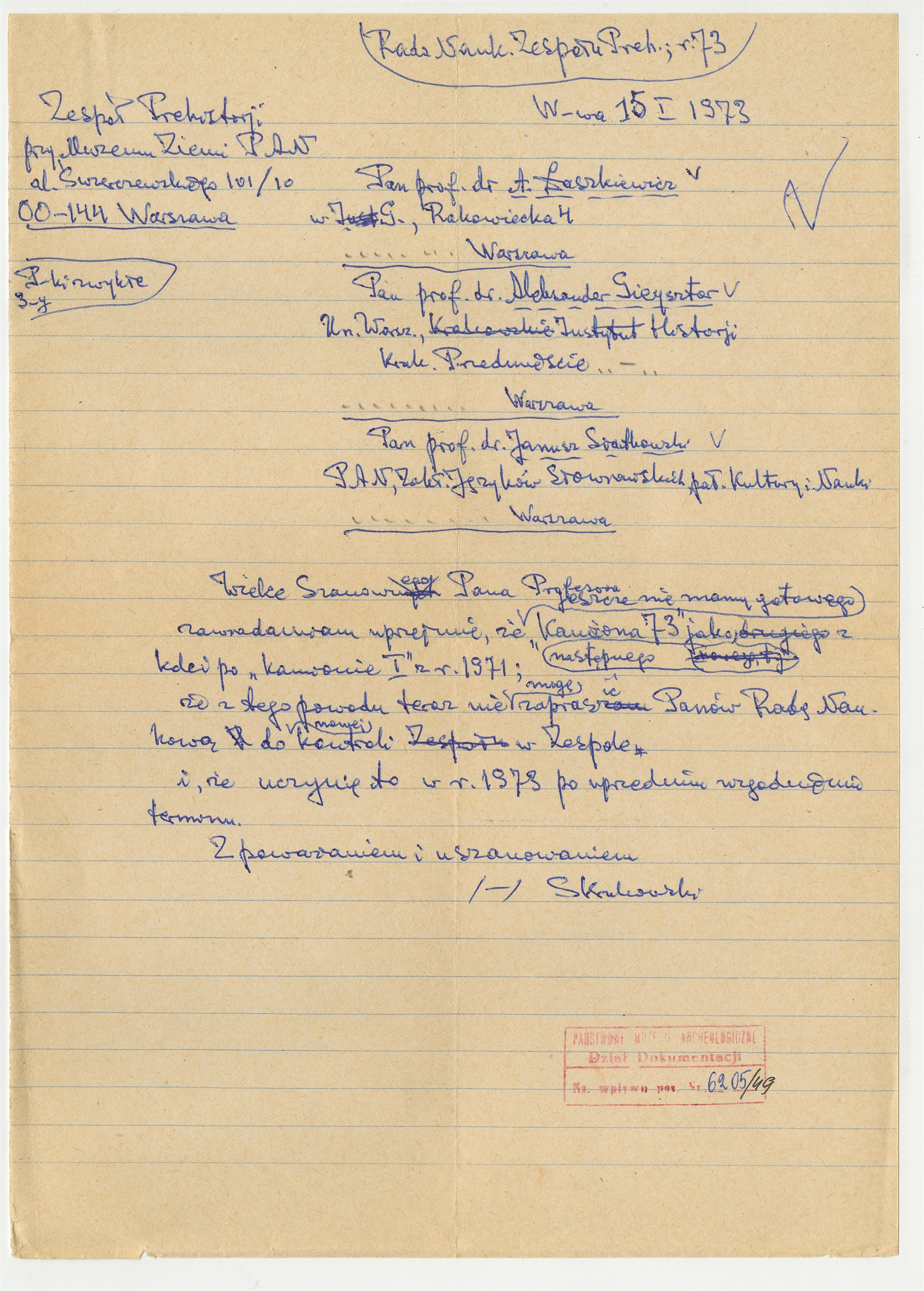 Rękopis - brudnopis listu Stefana Krukowskiego do: A. Łaszkiewicza A. Gieysztora J. Siatkowskiego z dn. 15 I 1973 r.