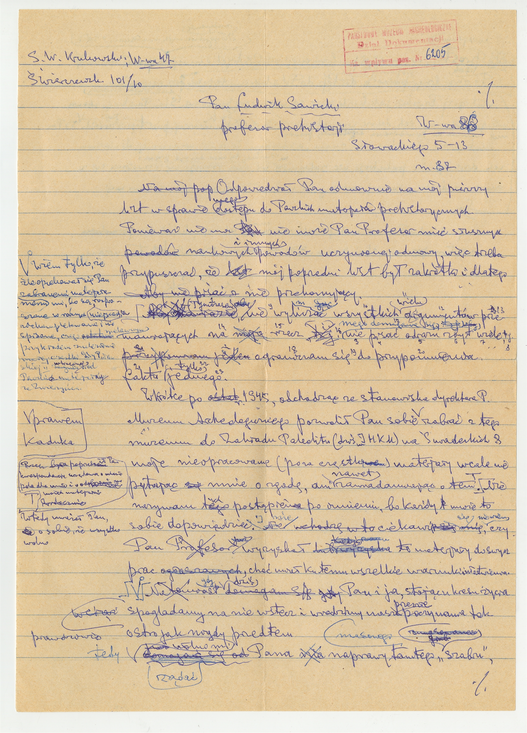 Rękopis - brudnopis listu Stefana Krukowskiego do Ludwika Sawickiego