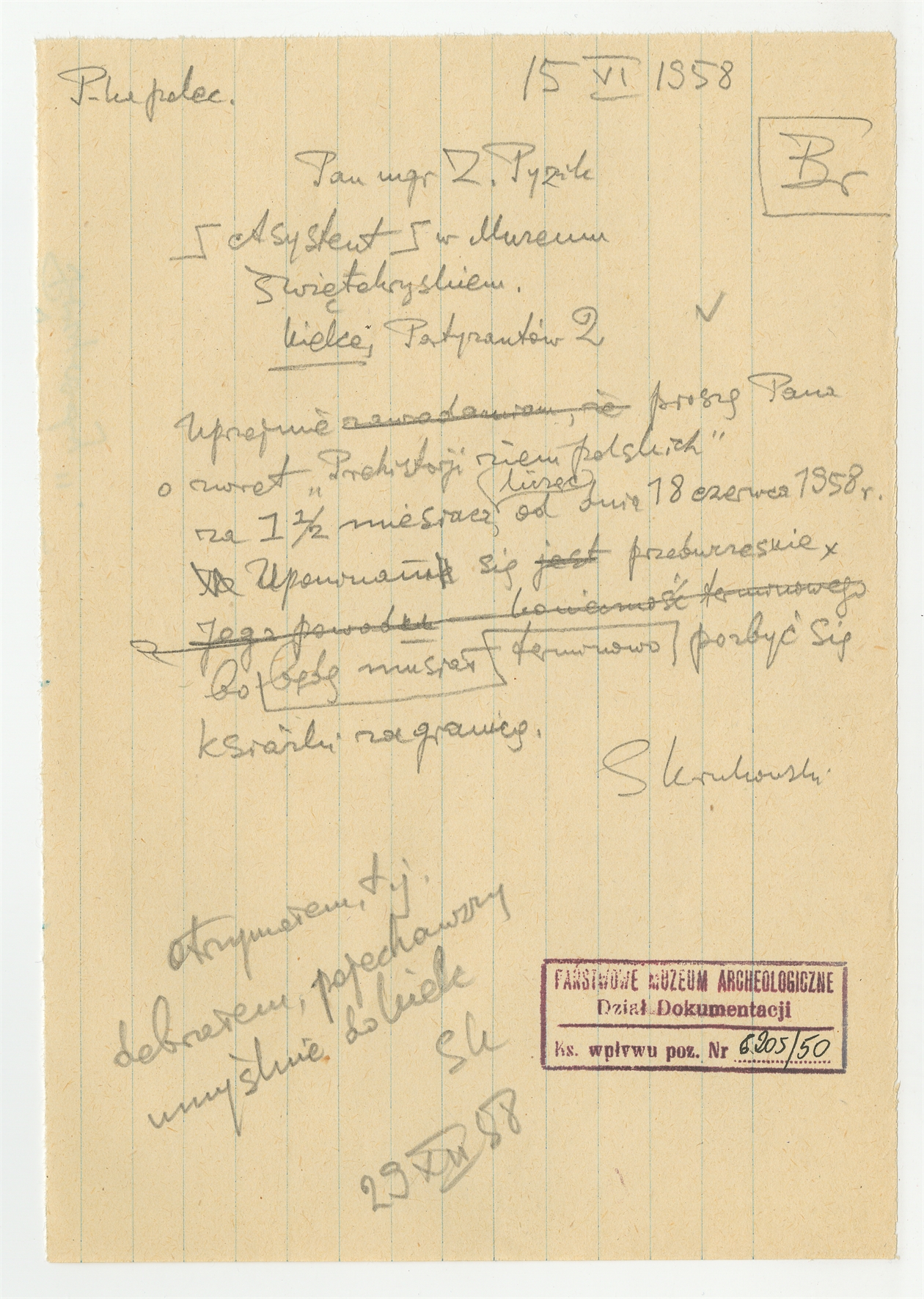 Rękopis - brudnopis listu Stefana Krukowskiego do mgr Z. Pyzika z dn. 15 VI 1958 r.