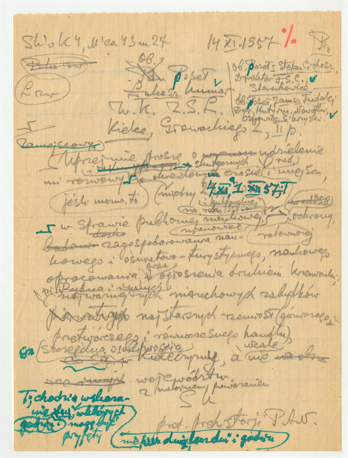 Rękopis - brudnopis listu Stefana Krukowskiego do posła Łukasza Kumora z dnia 14 XI 1957 roku w sprawie spotkania