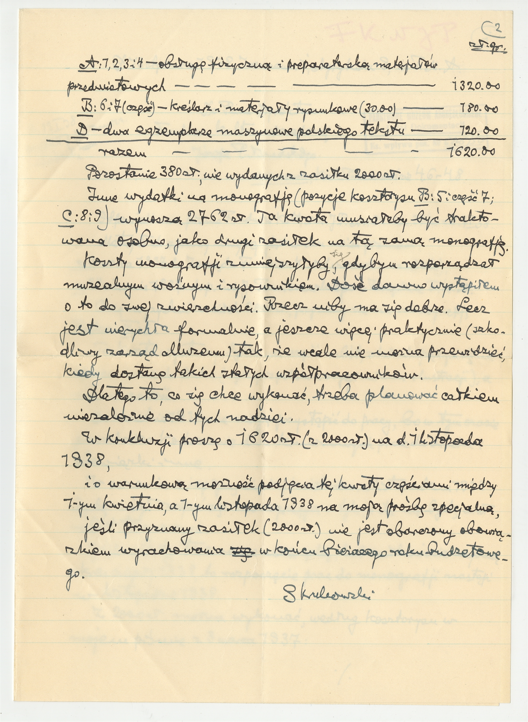 Rękopis - brudnopis listu Stefana Krukowskiego do Zarządu Funduszu Kultury Narodowej z dn. 13 I 1938 r. (cd)