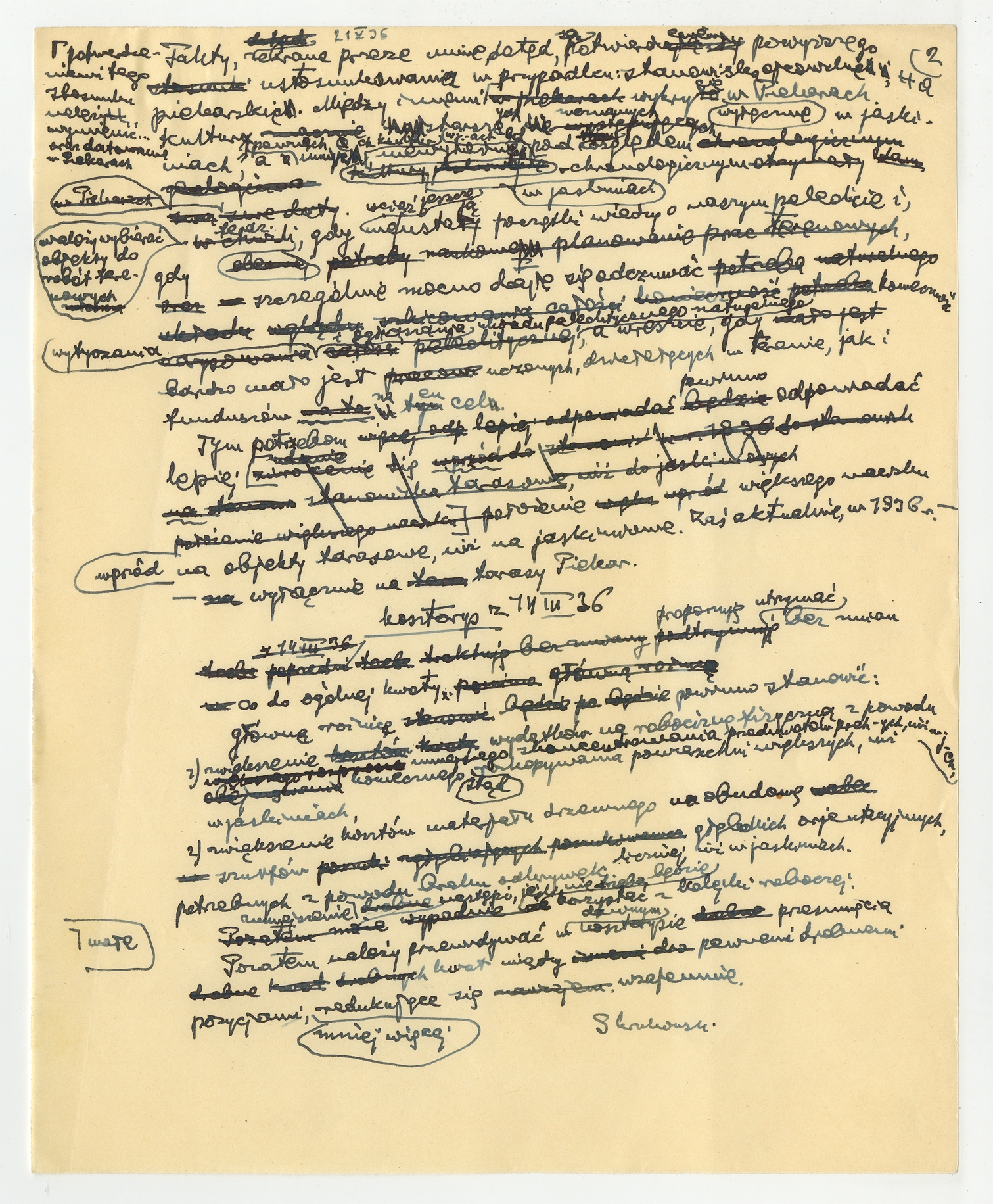 Rękopis - brudnopis listu Stefana Krukowskiego do Zarządu Funduszu Kultury Narodowej z dn. 21 V 1936 r. (cd)