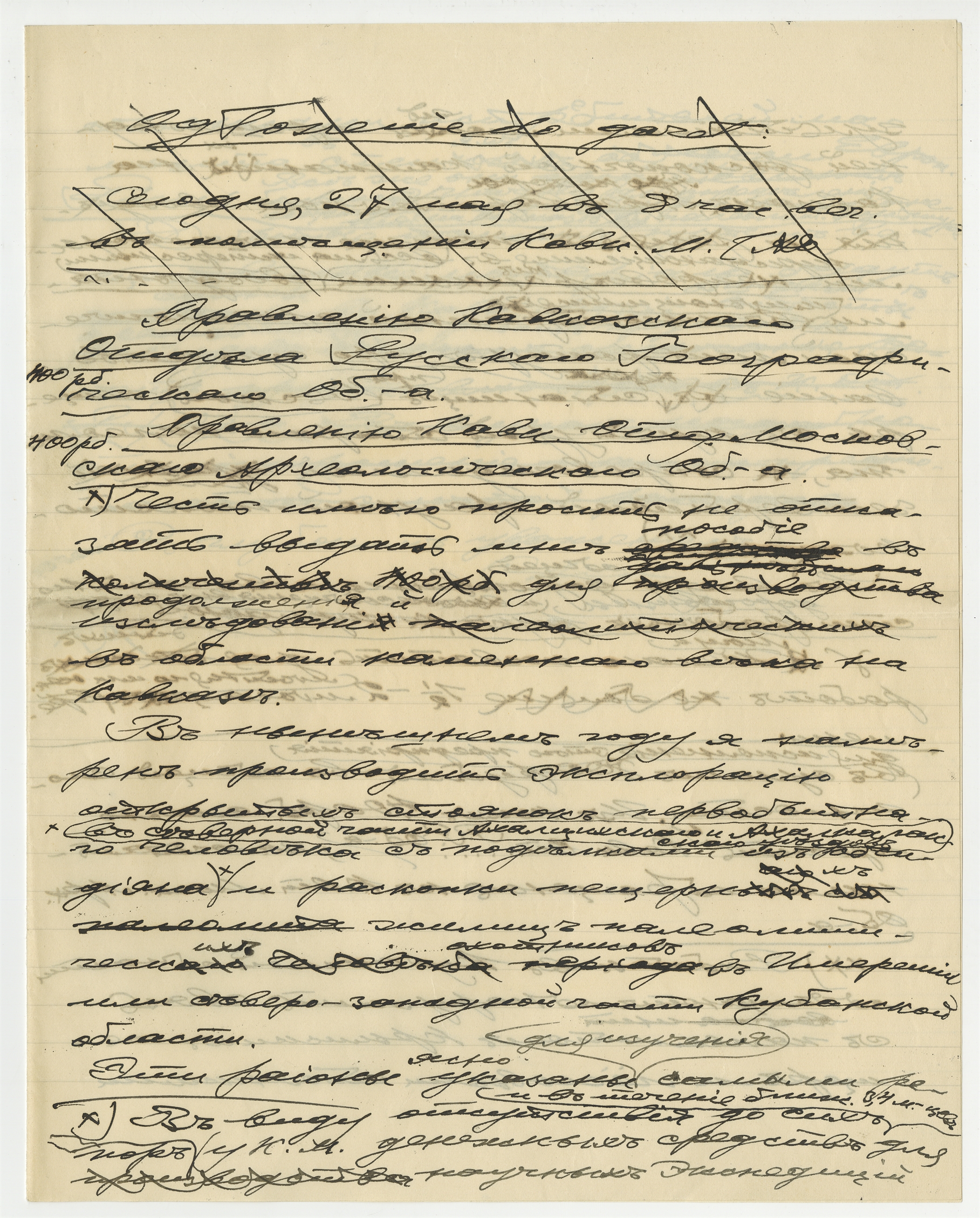 Rękopis - brudnopis listu (?) Stefana Krukowskiego w języku rosyjskim dotyczącego prac badawczych dla Muzeum Kaukaskim