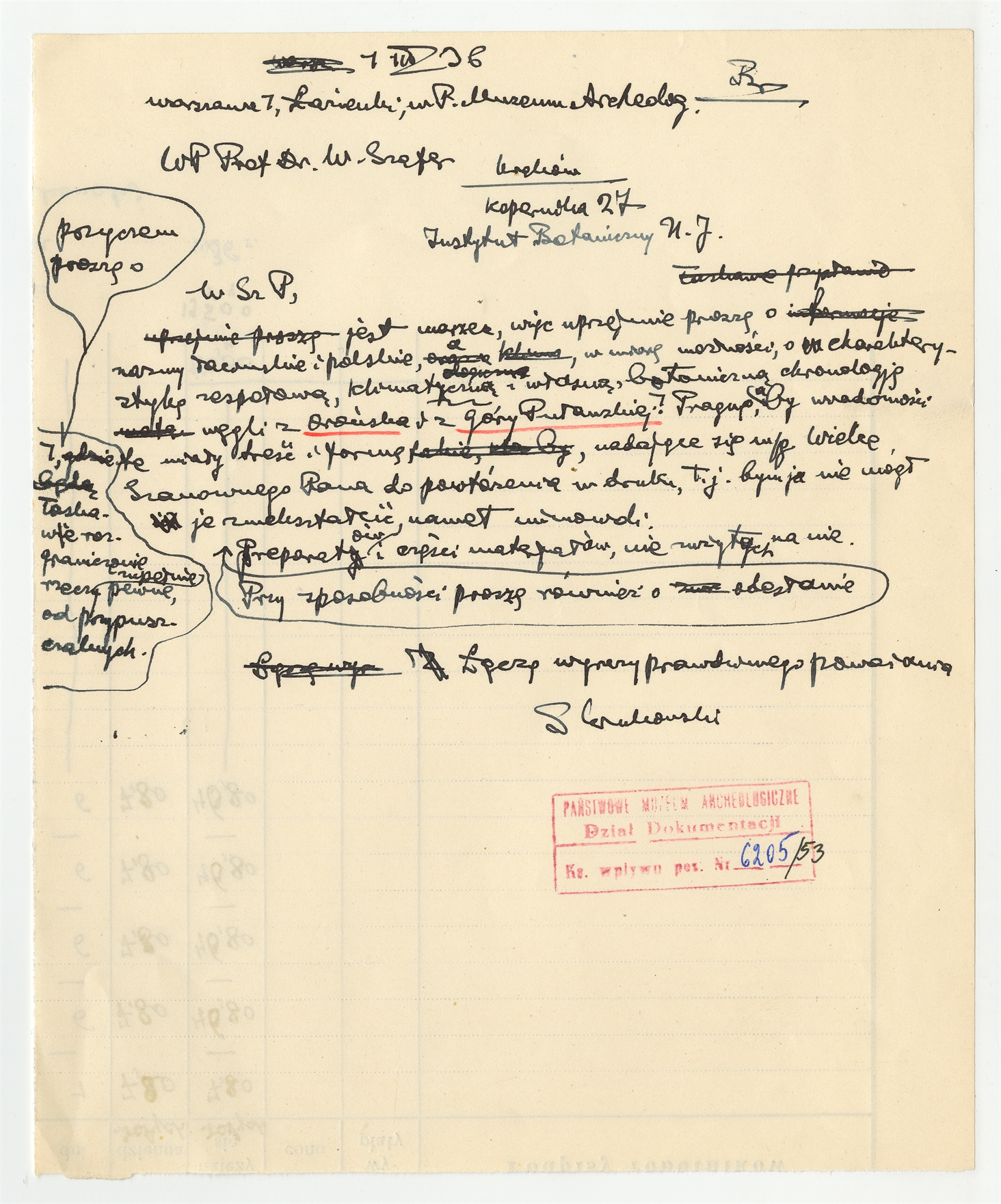 Rękopis - brudnopis listu Stefana Krukowskiego z dnia 1 III [19]36 roku do Władysława Szafera