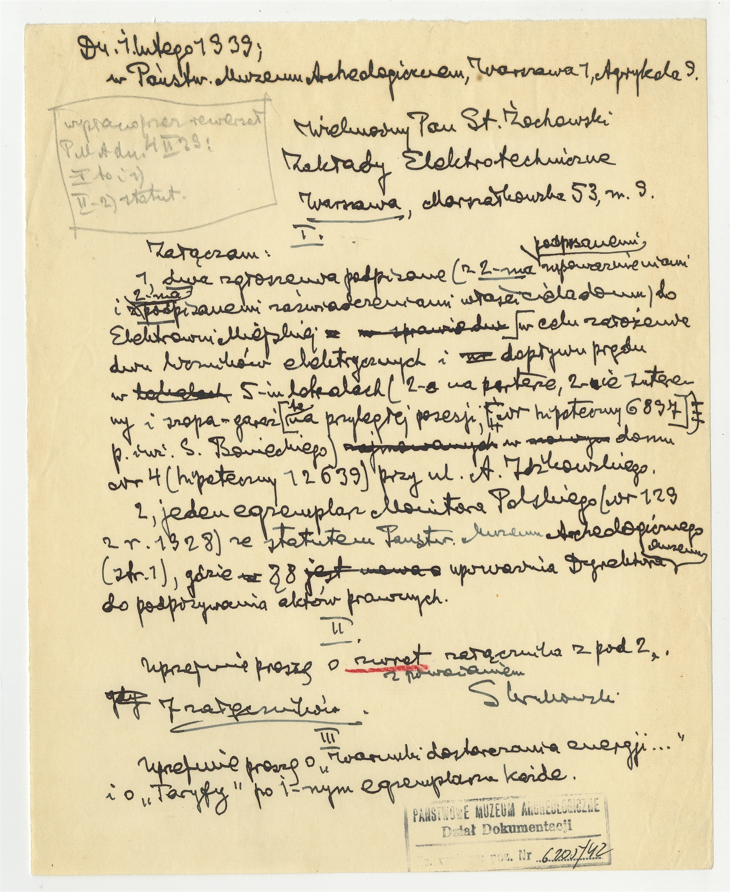 Rękopis - brudnopis listu Stefana Krukowskiego z dnia 1 lutego 1939 roku do St. Żochowskiego